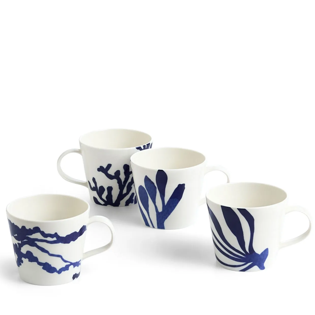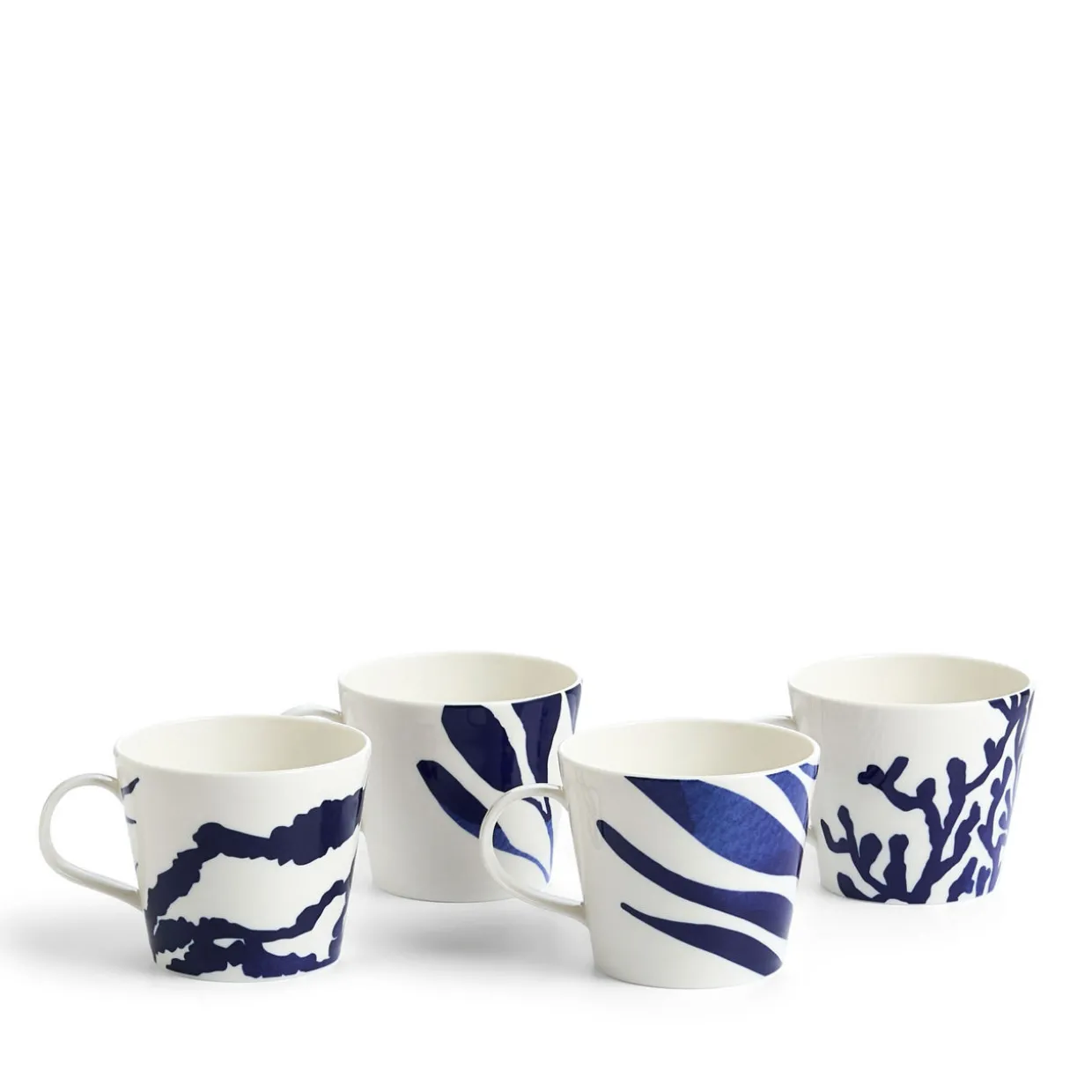 - Set of four mugs, crafted from porcelain, marine and coastal motifs, microwave safe, brand logo details