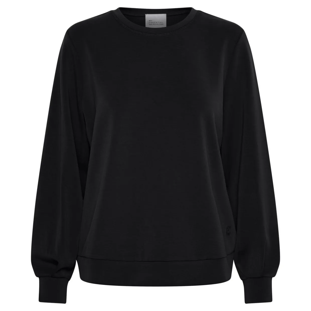 - Round neckline, long sleeves, fitted cuffs, straight hemline, dropped shoulders