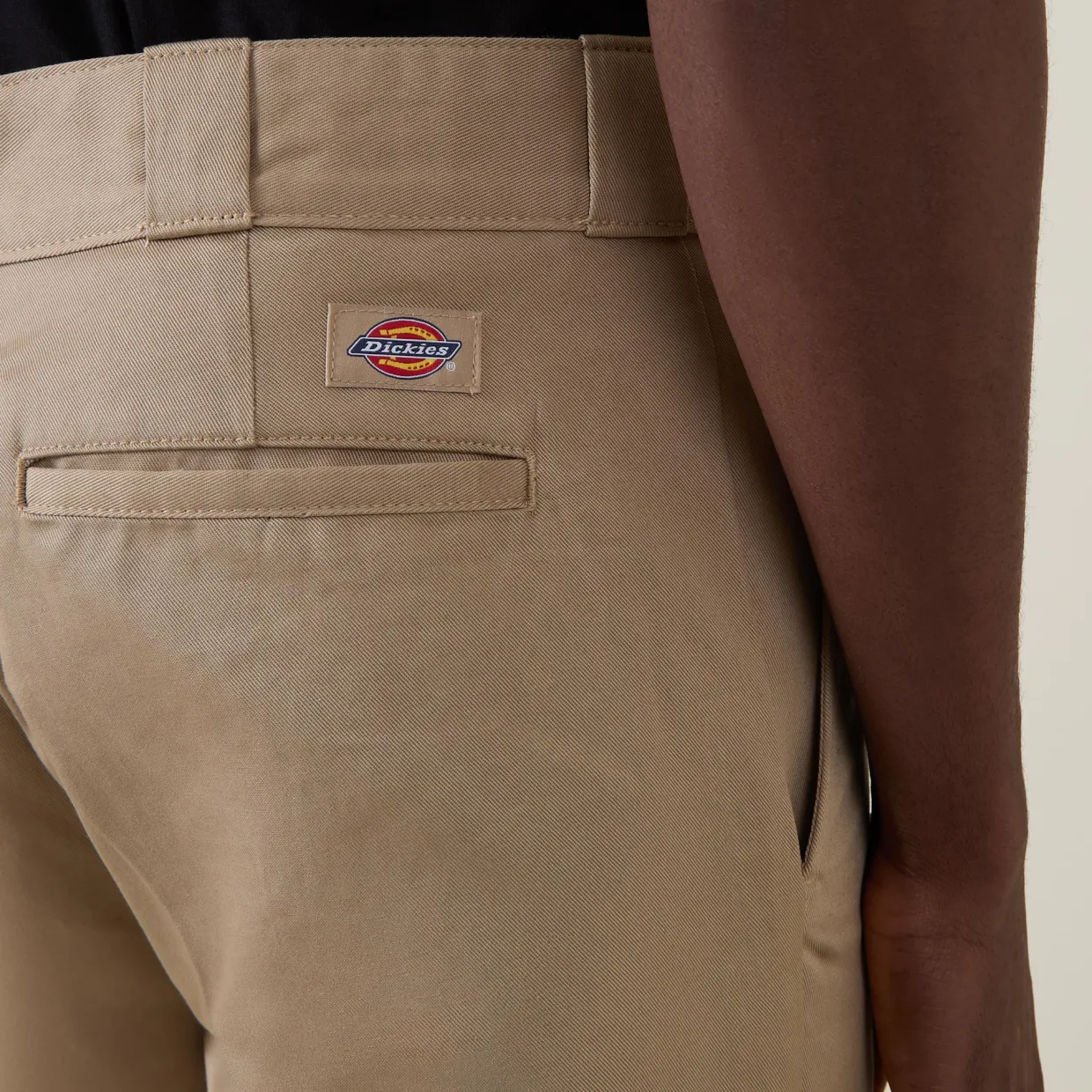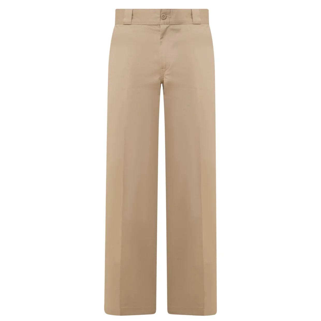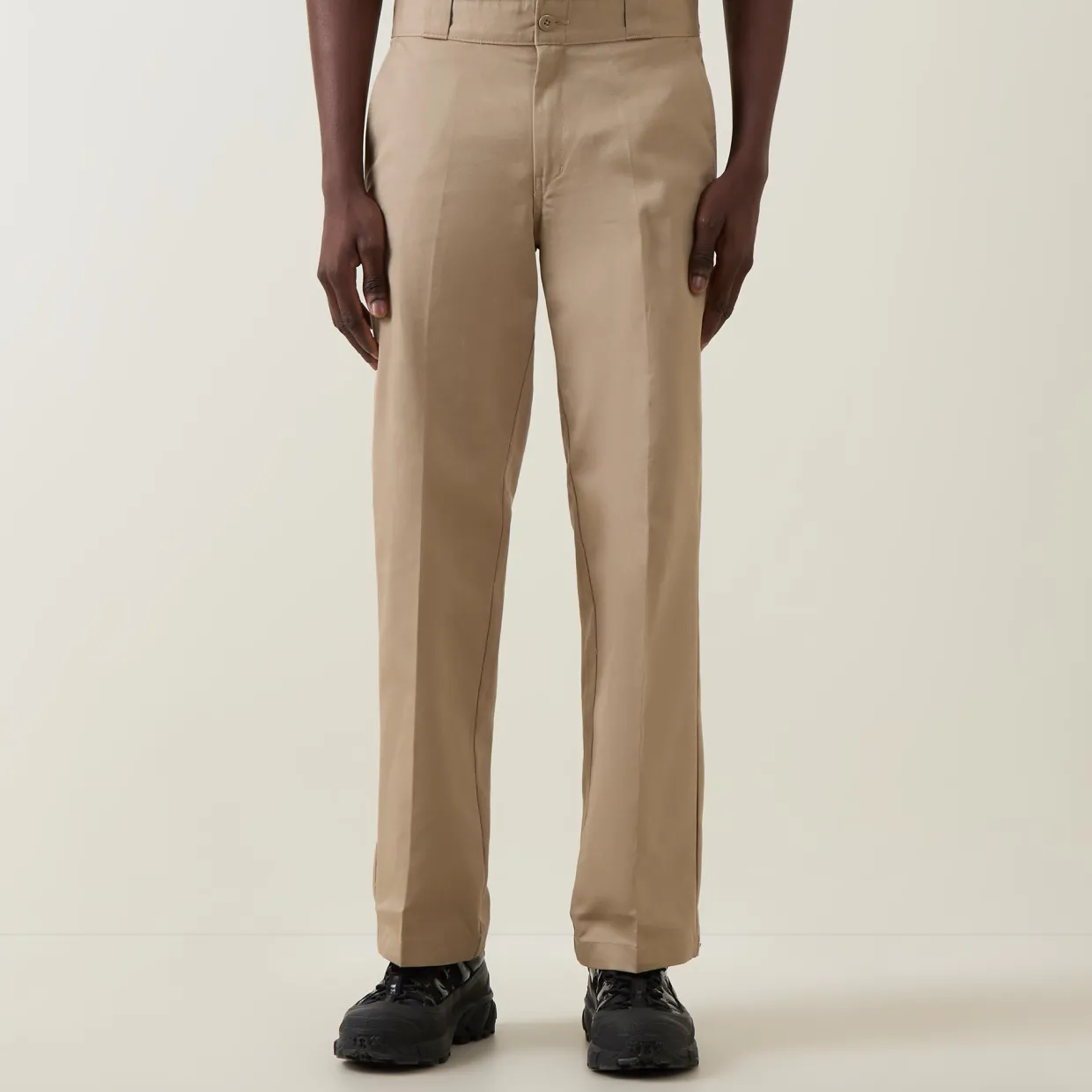 - Zip-fly and button closure, belt loops, four-pocket design, rear logo patch, pressed creases, mid-rise, straight-cut leg, smooth fabric