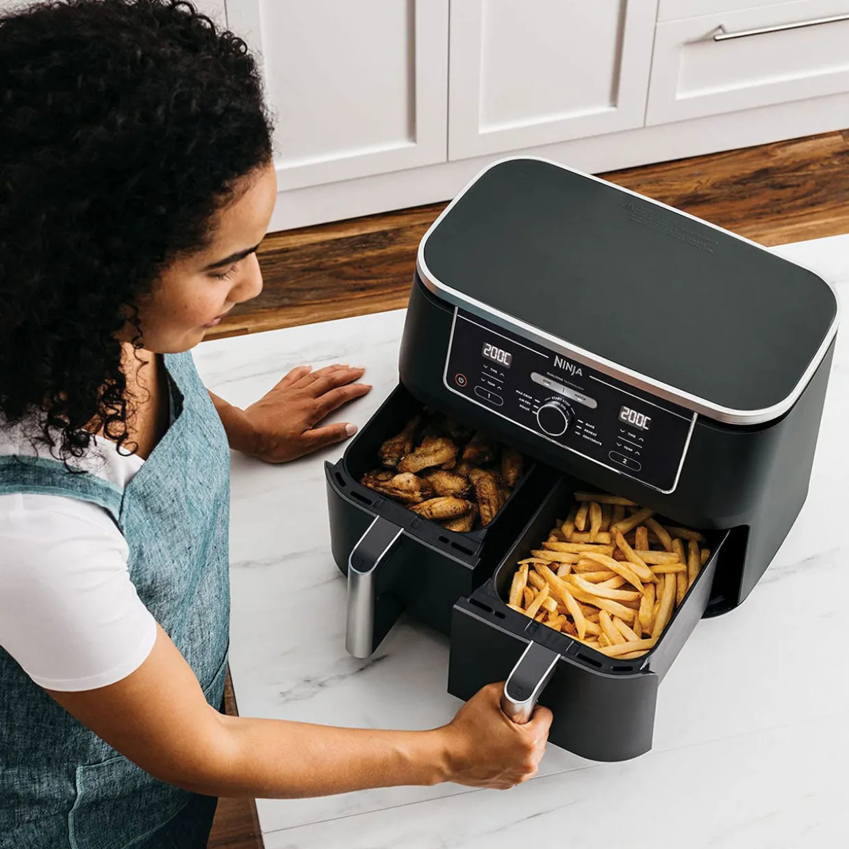 SYNC to cook different foods in each drawer – both ready to serve at exactly the same time!