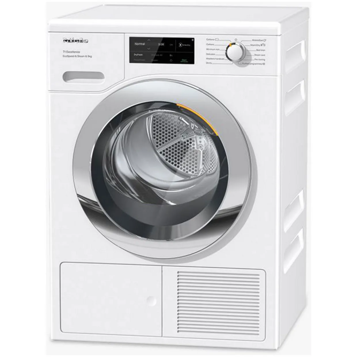 T1 heat-pump dryer: with SteamFinish, DryCare 40 and SilenceDrum for gentle drying.