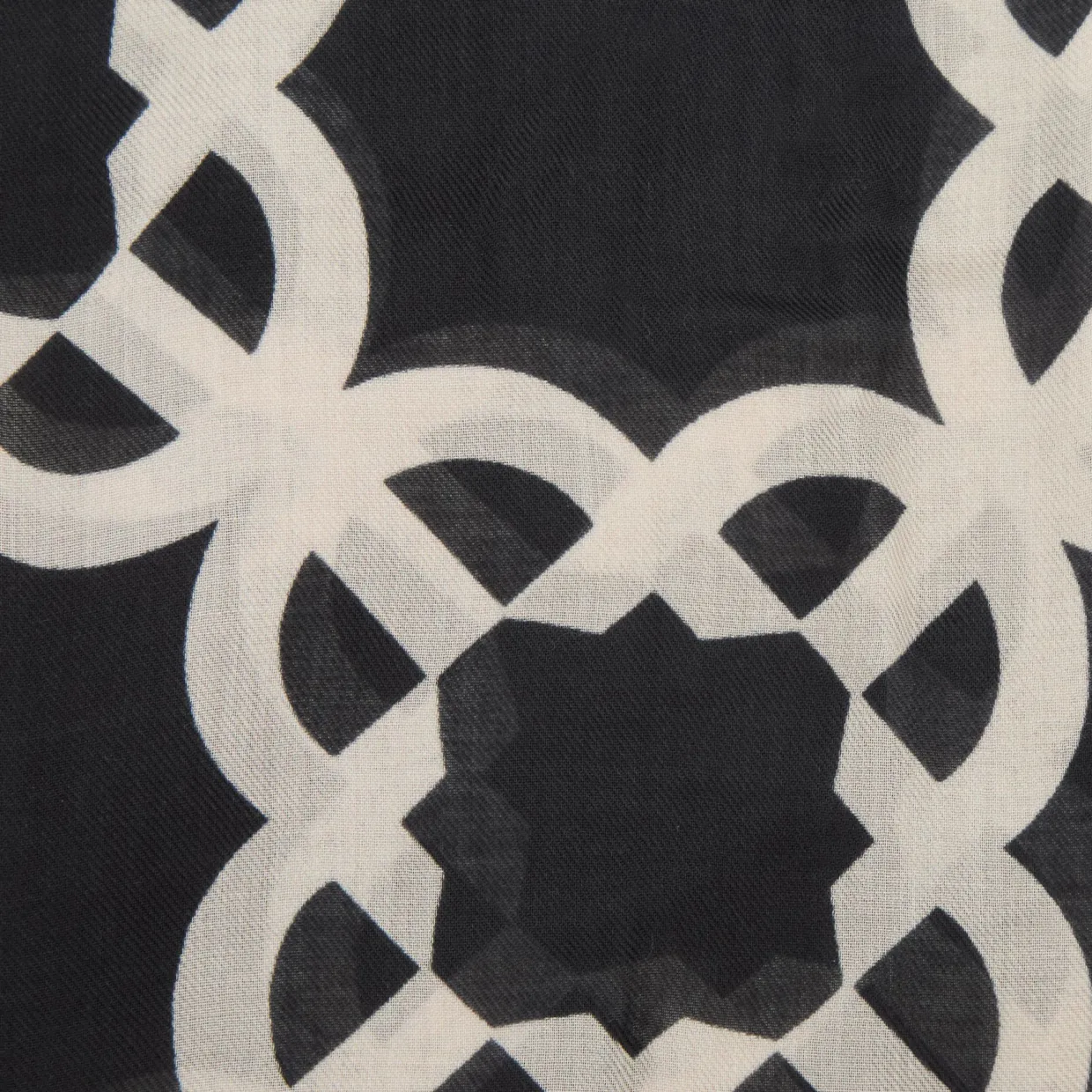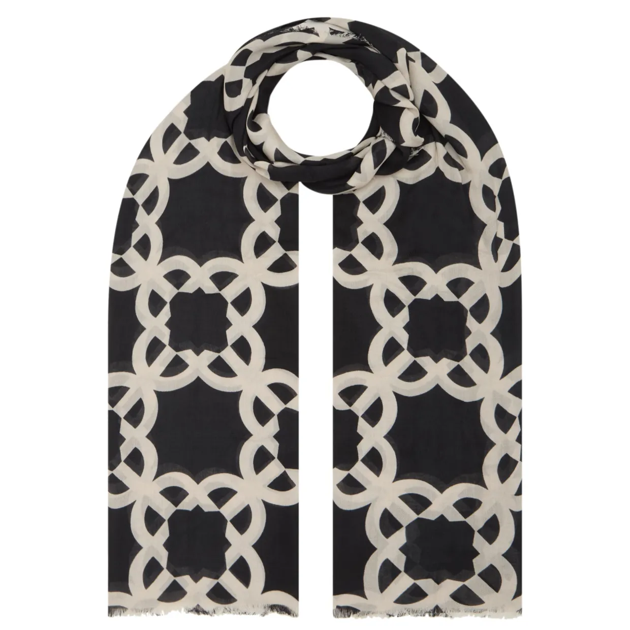 - Frayed ends, oblong shape, abstract print, lightweight