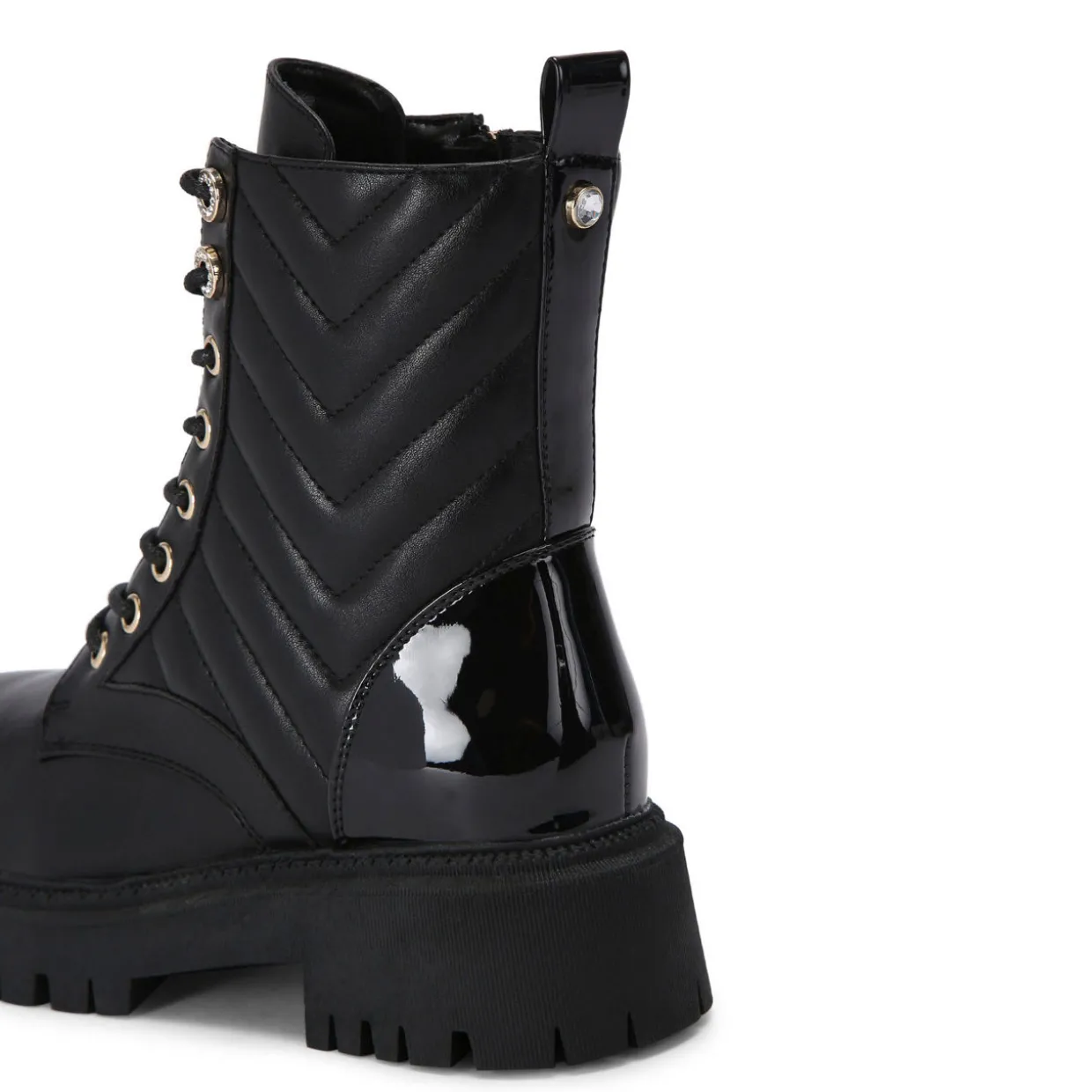 - Round toe, calf-length, side-zip and lace-up fastening, quilted detailing, pull tab at heel, lug sole, All Day technology, gold-tone hardware, stone detail at back
