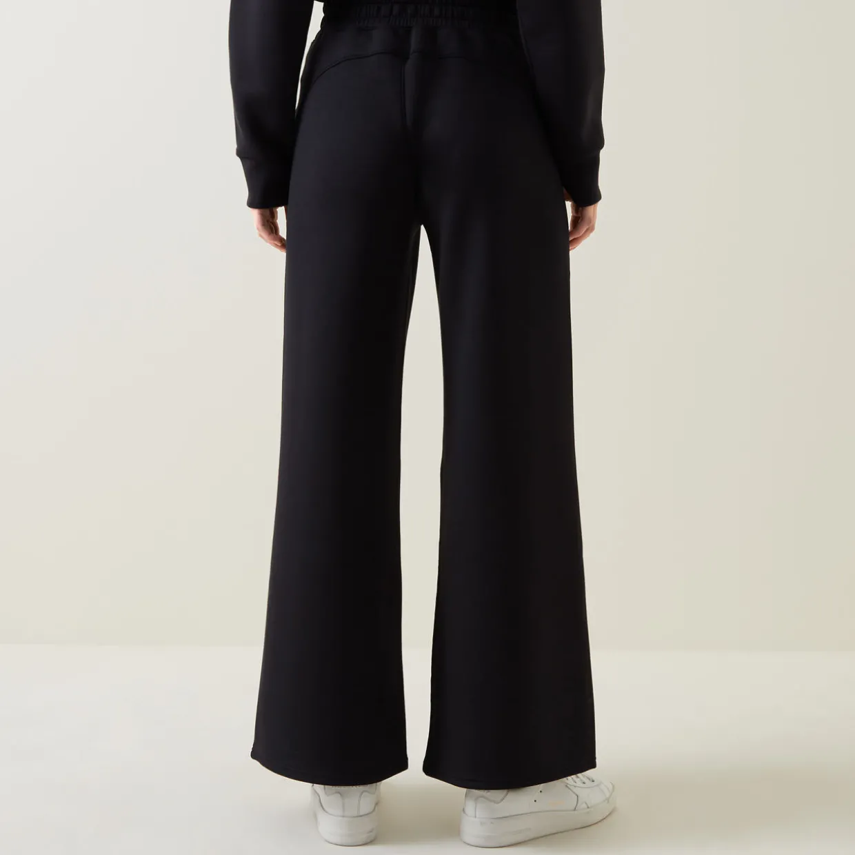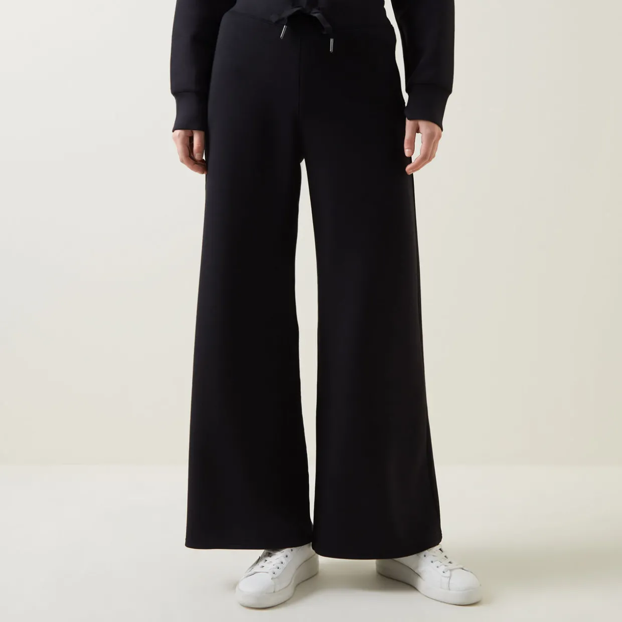 - Wide leg elasticated waistband, drawstring fastening, lightweight, fine knit