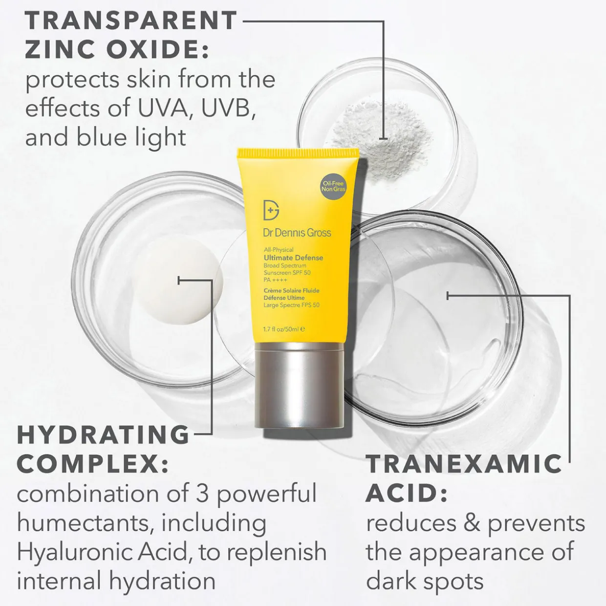 - Key Benefits: This powerful sun protection prevents sun damage throughout frequent and high sun exposure while hydrating skin and reducing uneven skin tone. In addition to zinc oxide, tranexamic acid fights hyperpigmentation while a hydrating complex of humectants help bind moisture to the skin.