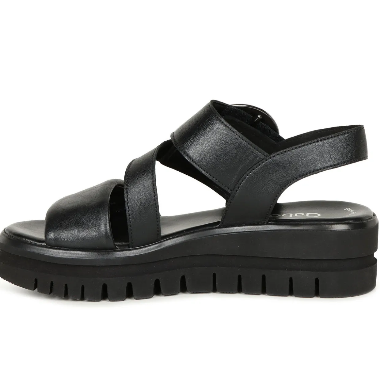 - Triple strap design, oversized buckle detail, leather uppers, chunky cleated sole