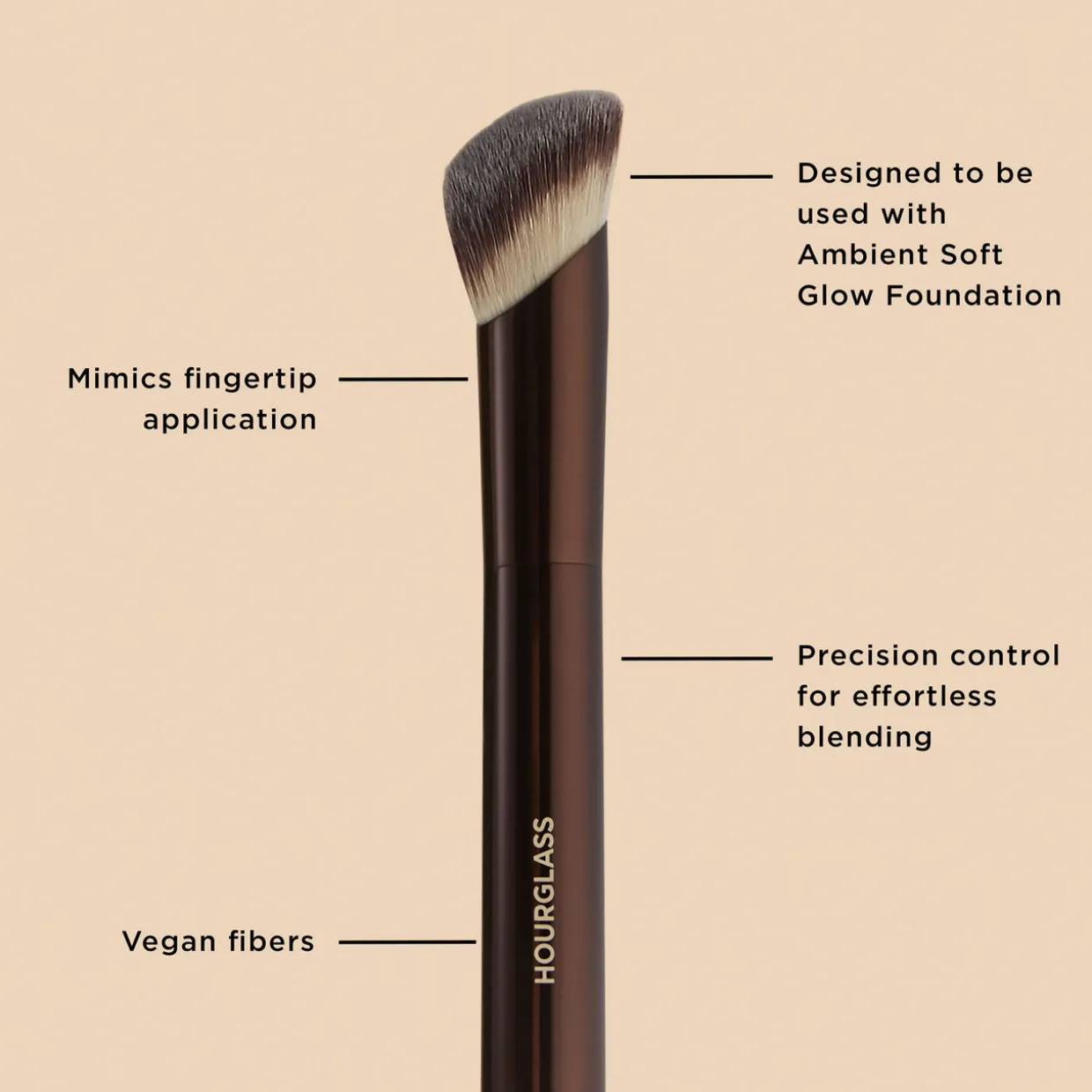 Designed to mimic the delicate and precise control of fingertips, this cruelty-free brush features unique vegan fiber technology and custom bristles for effortless blending and intuitive, even application. The unique laser-cut design allows for maximum control for seamless application. It is specially developed to enhance the performance of Ambient Soft Glow Foundation and can also be used with any liquid and cream complexion products.