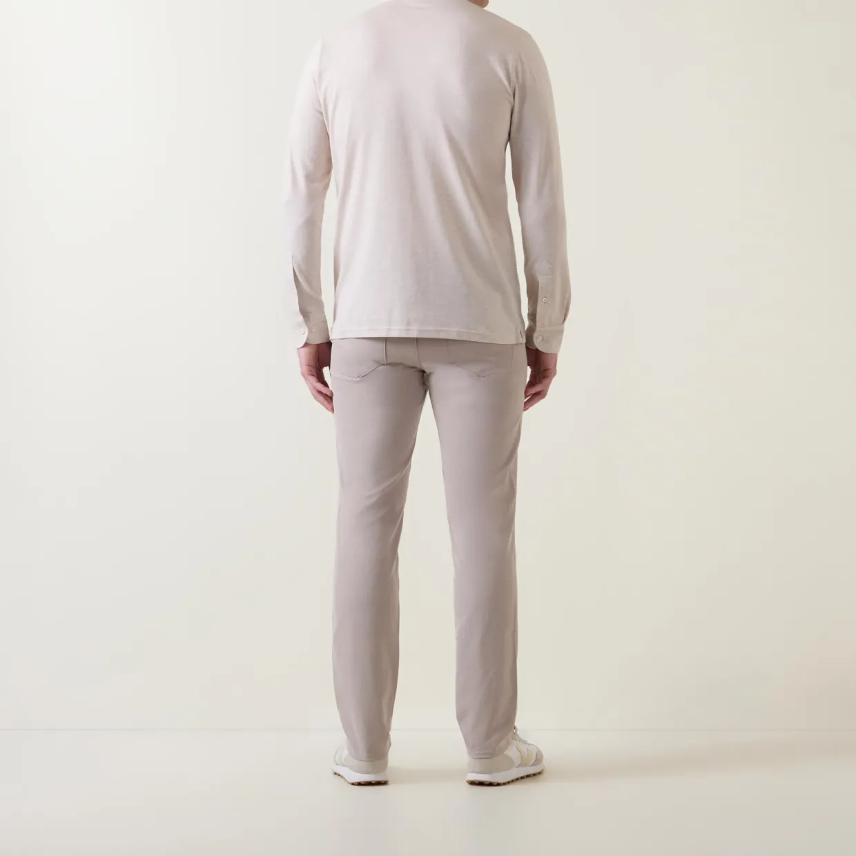 - Classic collar, button fastening, long sleeves, buttoned cuffs, straight hemline, chest patch pocket, jersey knit fabric