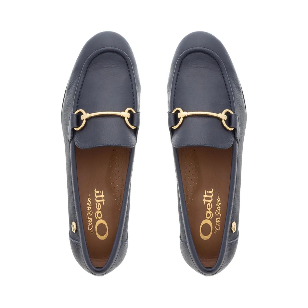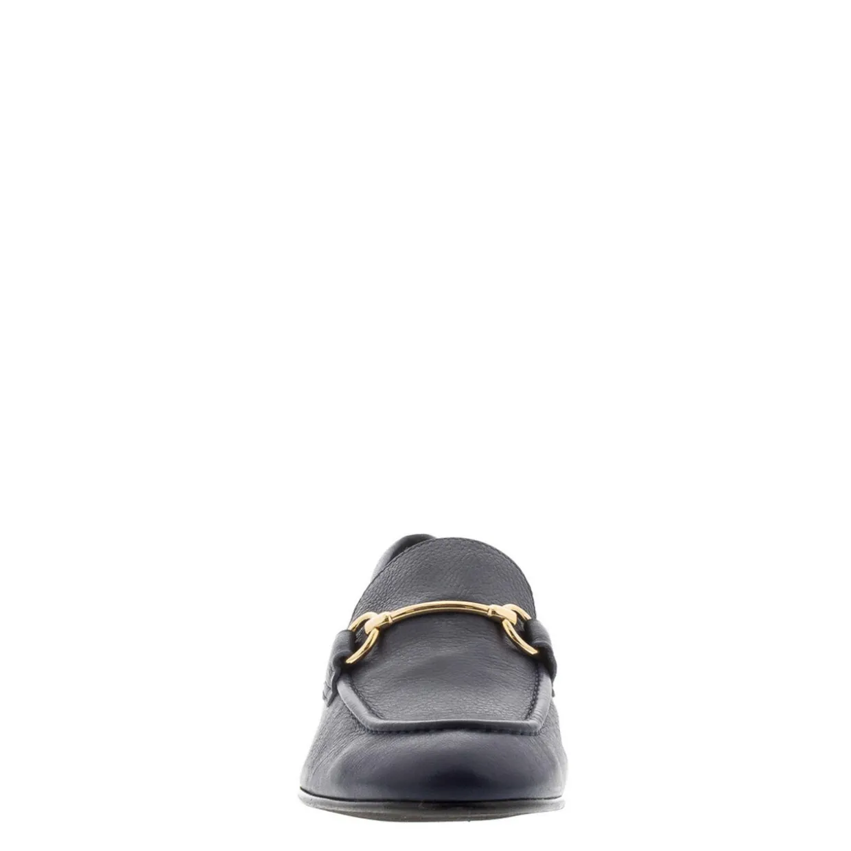 - Product Details: Almond Toe Loafer, Snaffle Detail, Raised Apron Detailing, Leather Upper, Cushioned Sole, Low Block Heel, Slip On, Carl Scarpa Signature Emblem
