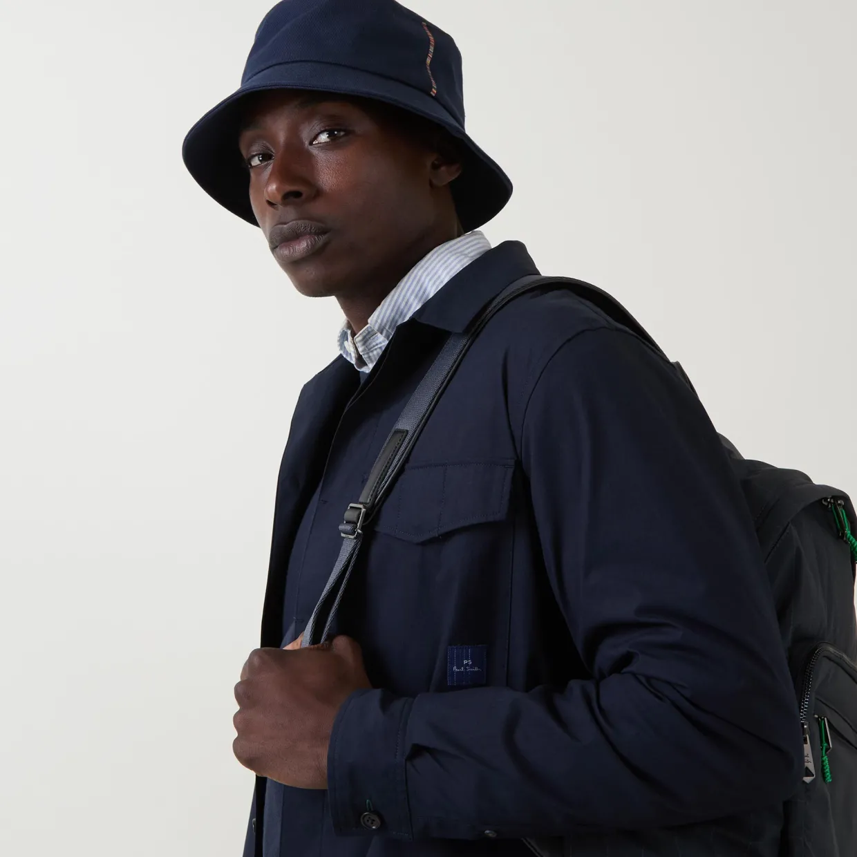 - Bucket shape, wide brim, tonal stitching, signature Artist Stripe detail, smooth finish