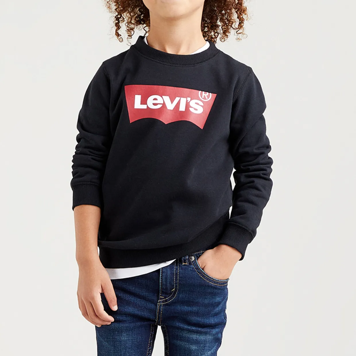 - Long sleeves, ribbed cuffs, ribbed crew neck, elastic ribbed hemline, Levi’s® housemark logo on the chest