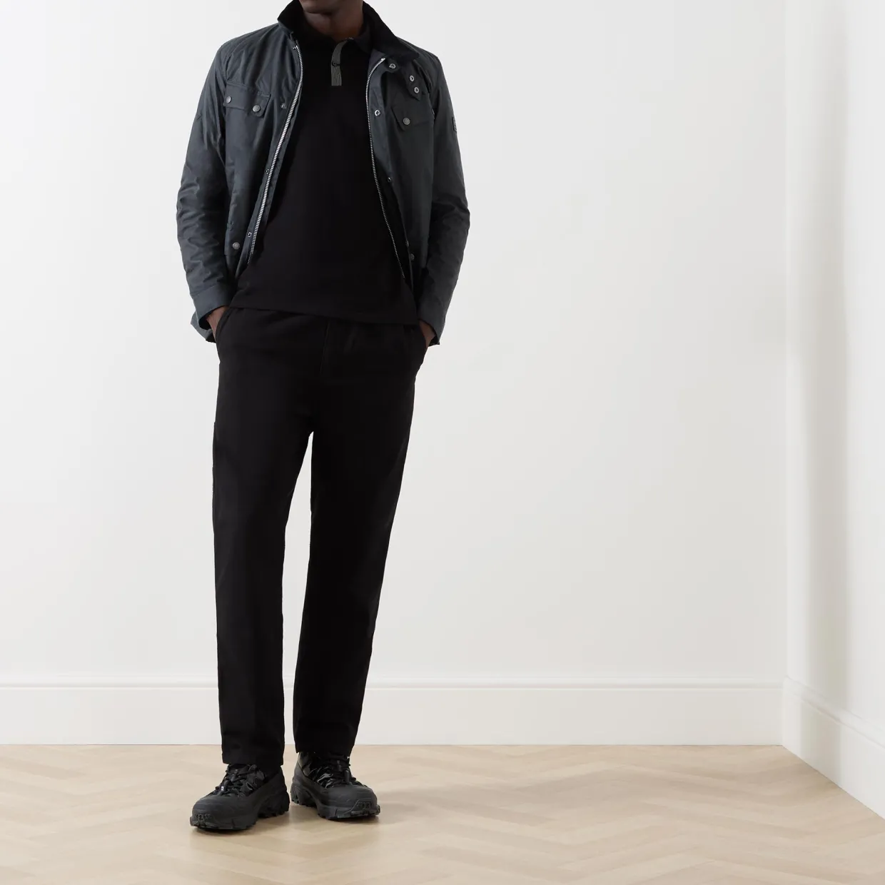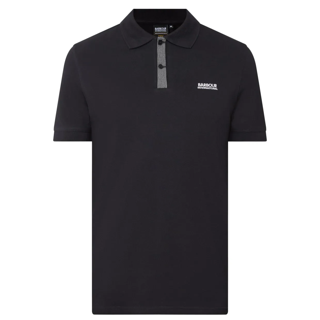 - Flat knit collar and cuffs, short sleeves, button fastening, knit placket detail, straight hemline, split side seams, embroidered logo detail