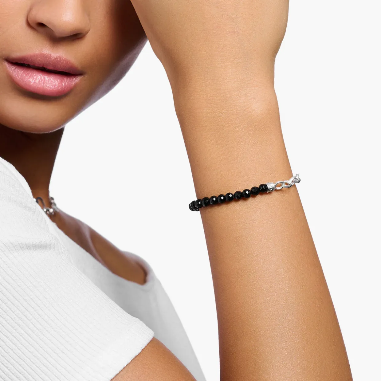 - Beaded details, chain link, lobster clasp fastening, adjustable fit, ring shaped charm with engraved logo