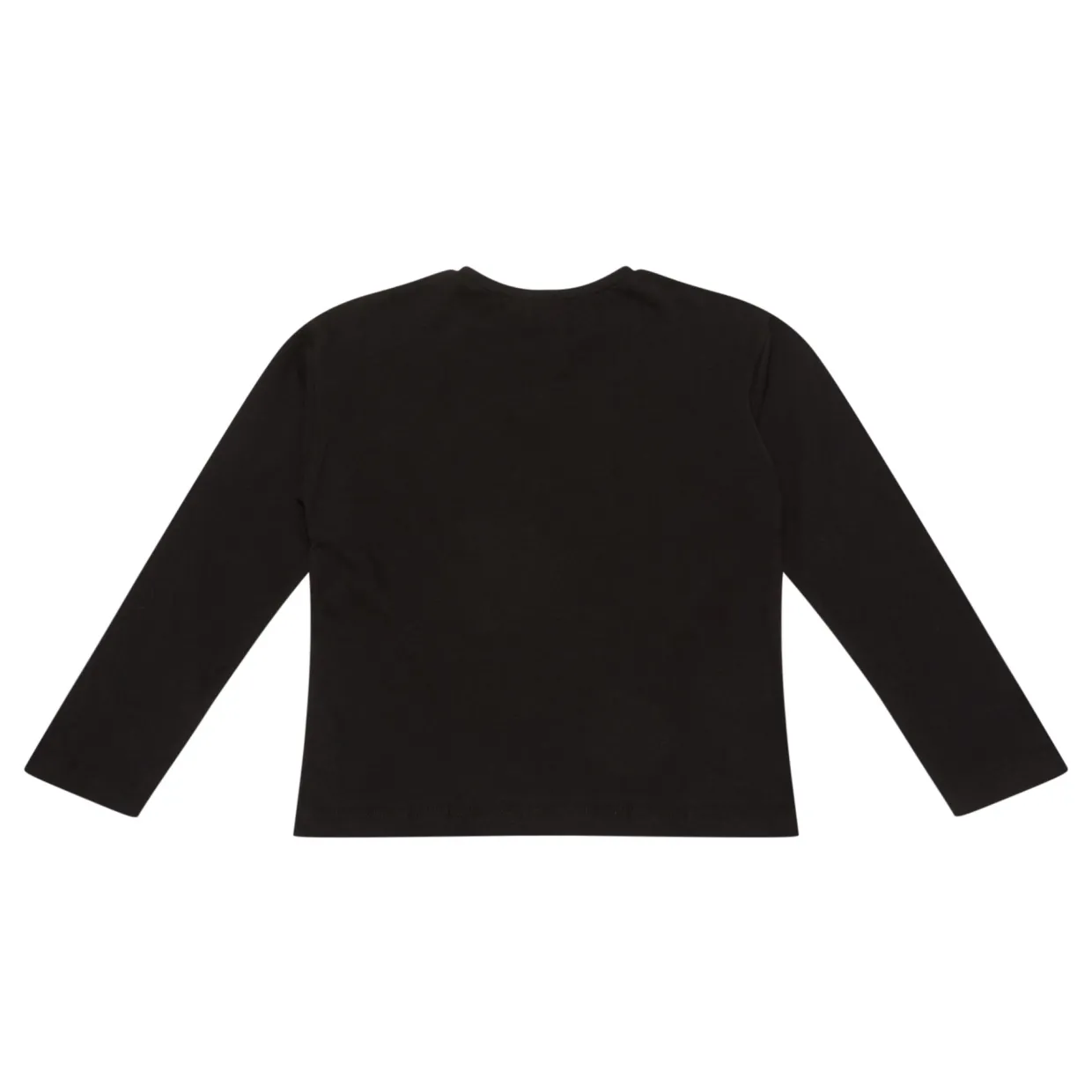 - Textured bear and bow motif, round neck, long sleeves, straight hemline