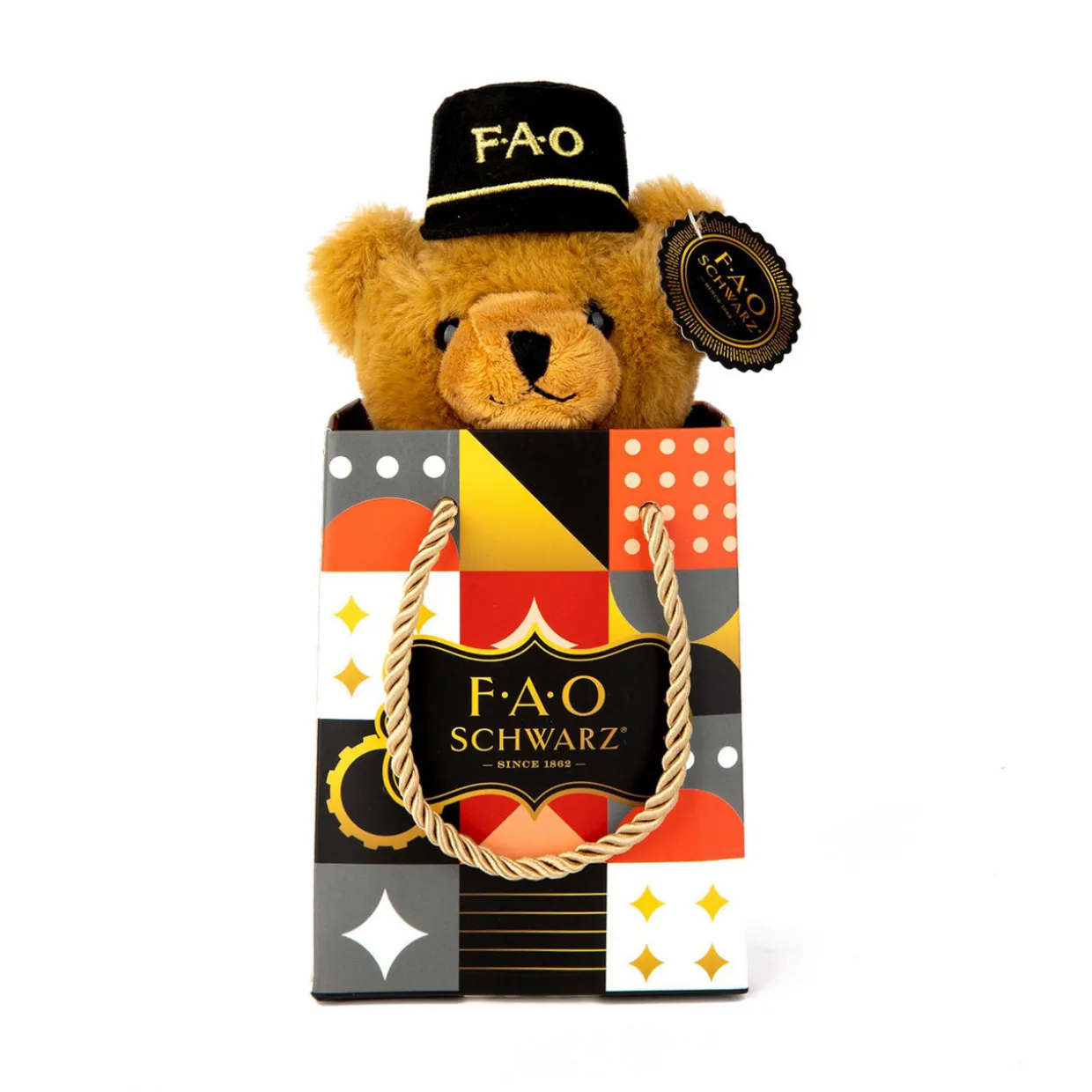 The perfect bear for both young and old, this FAO Schwarz Bear In A Bag will put a smile on anyone’s face. Measures 7 inches. Please note the video features other soft toys which are also available.