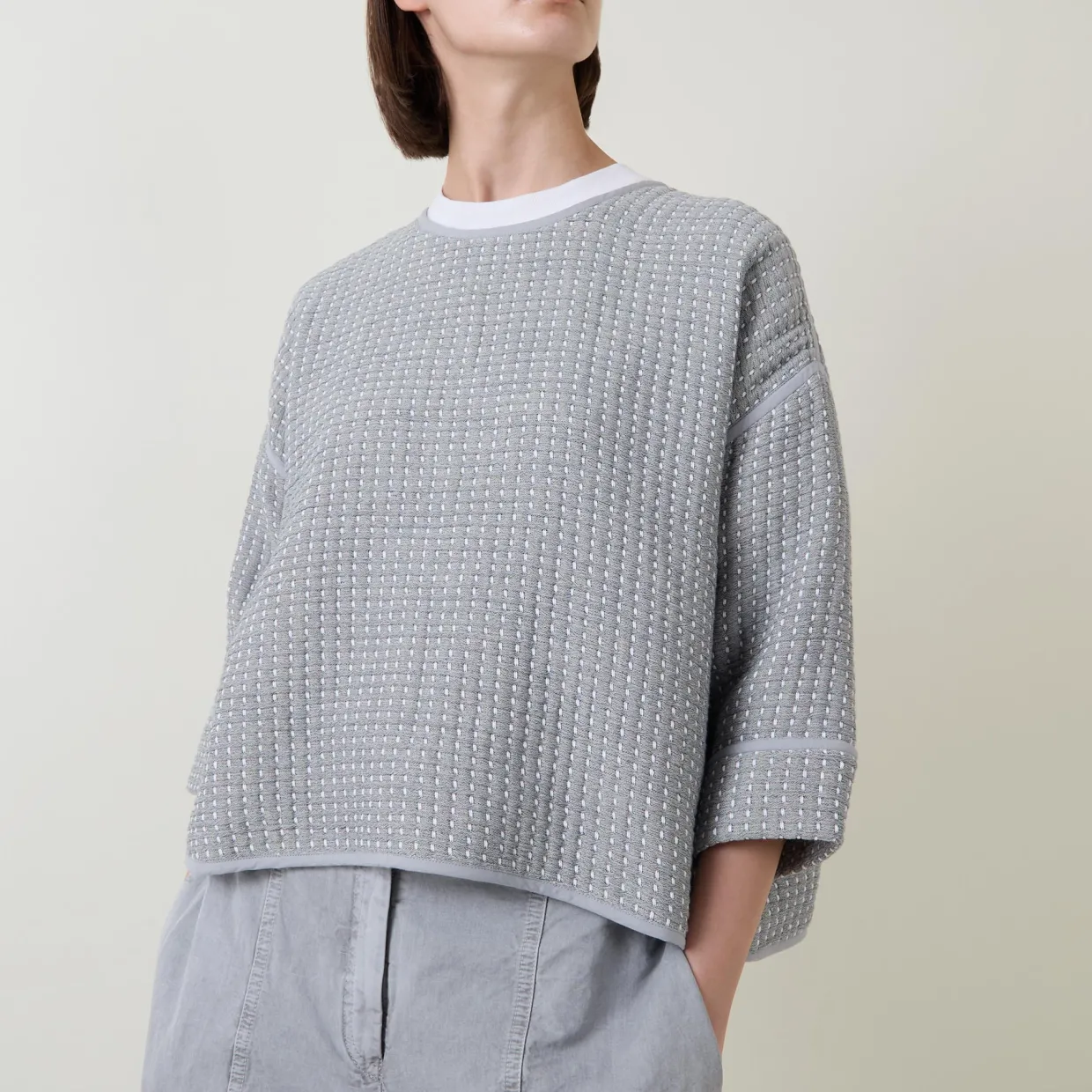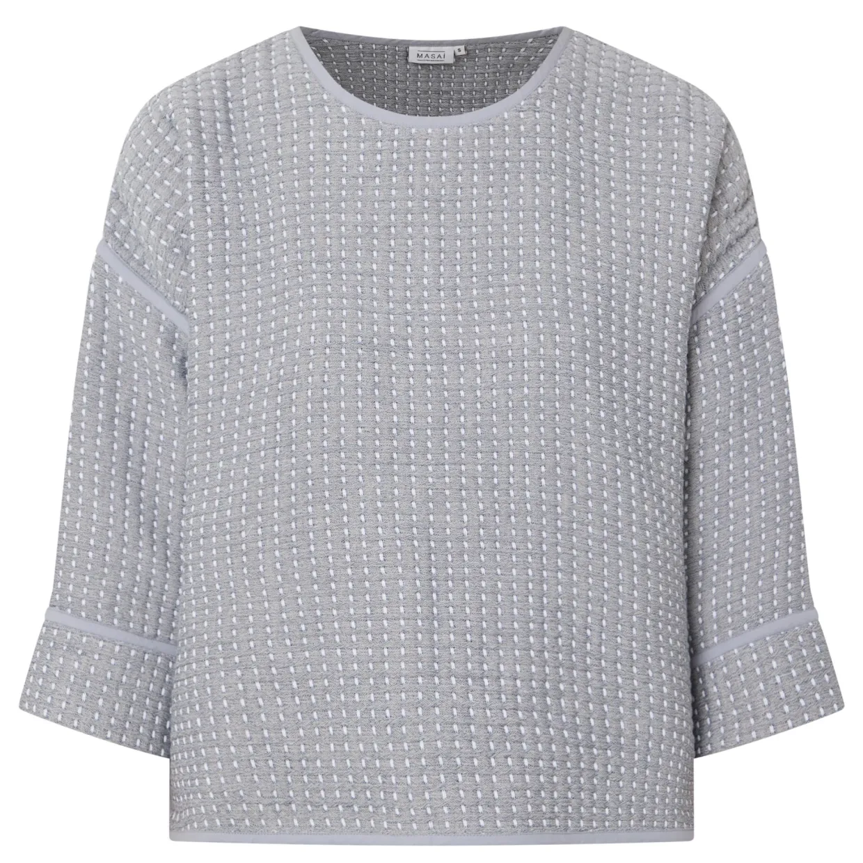 - Round neckline, three-quarter-length sleeves, dropped shoulders, straight hemline, bound trims, embroidered details