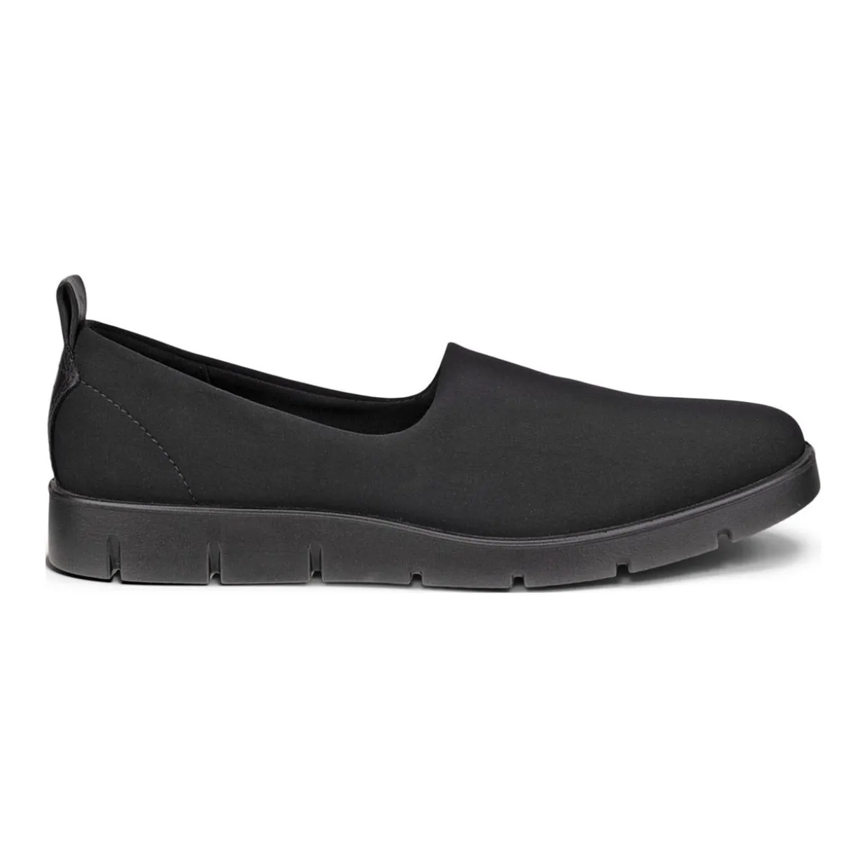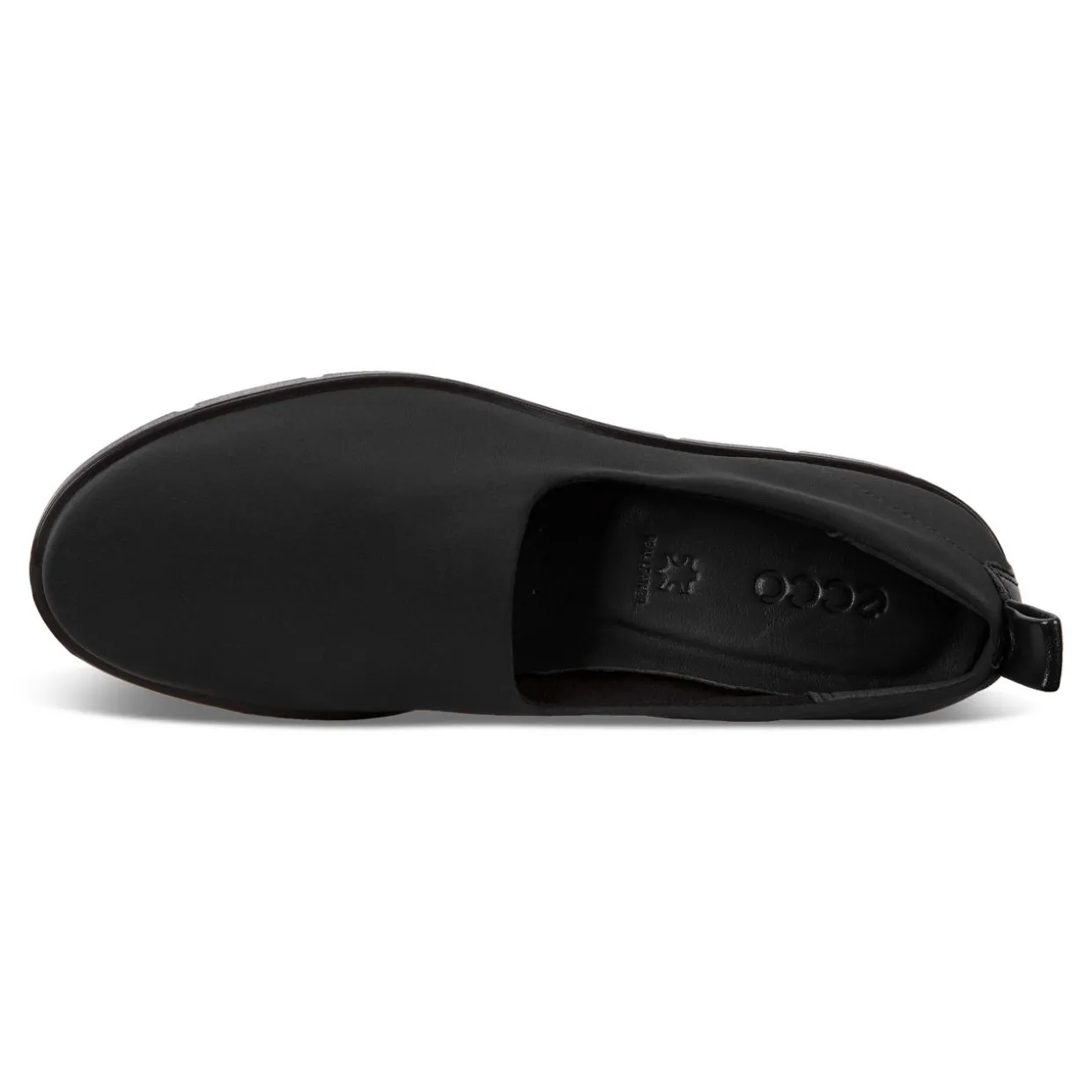 - The understated ECCA BELLA slip ons take simplicity to new heights. Featuring a clean seam free design these slip on shoes boast a modern shape and a narrow sole. Minimal versatile styling means that they can be paired with jeans or with more elegant outfits for evening occasions.