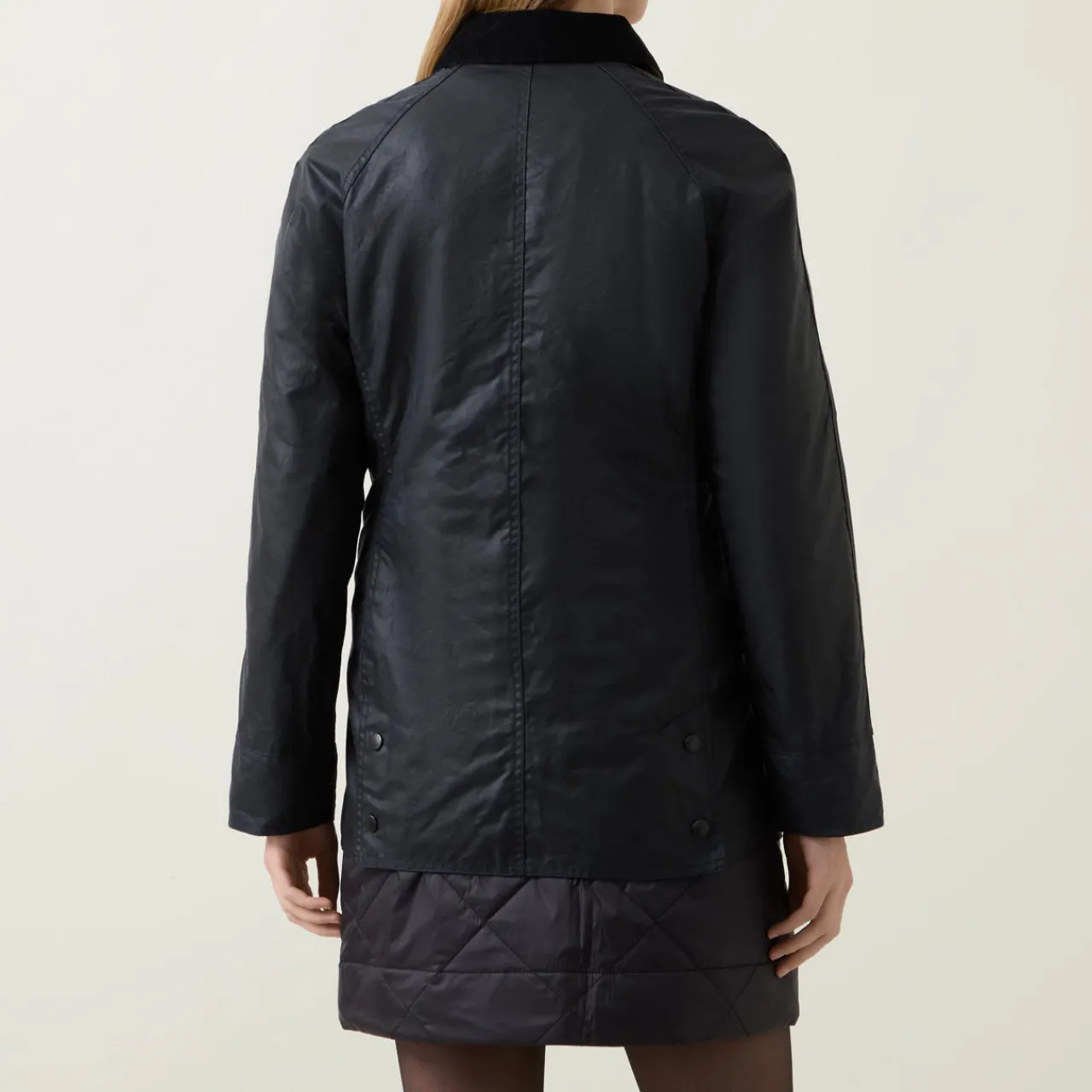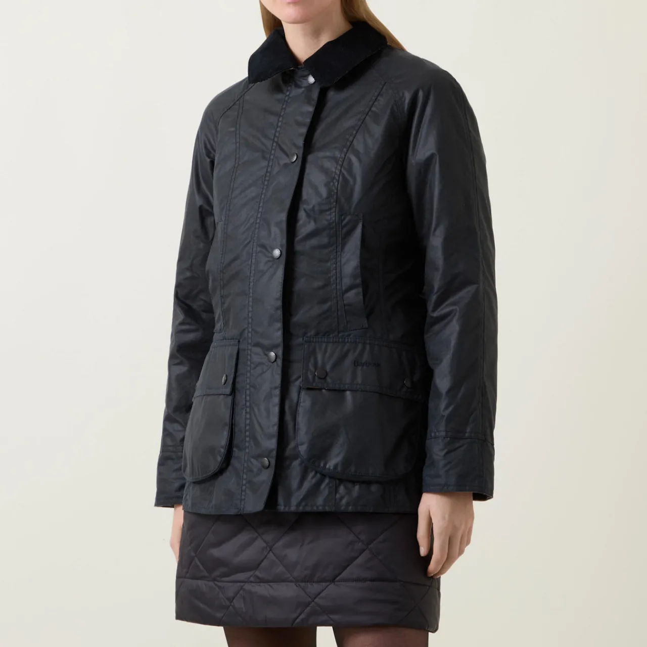 - Pointed collar, long sleeves, button fastening, slit pockets, two flap pockets, logo embroidery, wax coated finish