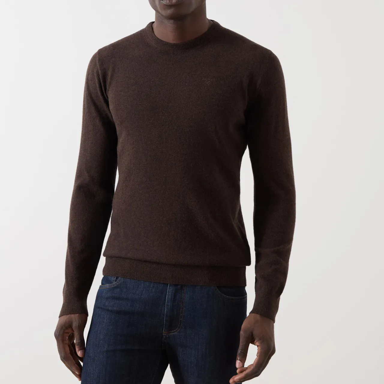 - Crew neck, long sleeves, straight hem, ribbed trims, tonal micro logo embroidery on the chest, fine-knit construction, soft finish