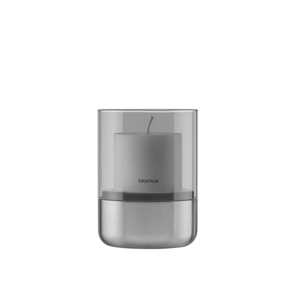 - Candle holder, suitable for tea lights and pillar candles, stainless steel design, matte finish, smoked glass, logo detail