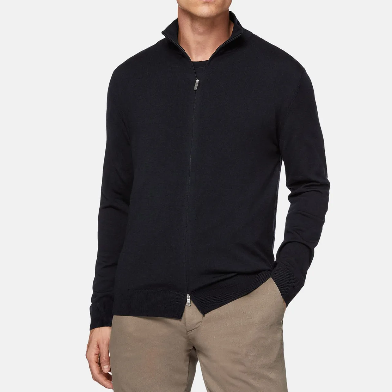 - Fine design, funnel neckline, long sleeves, two-way zipper, ribbed trims