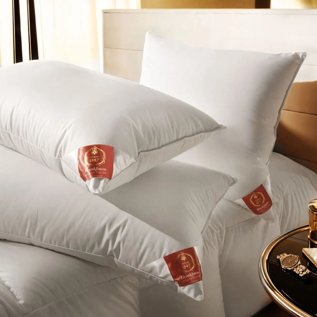 This extremely comfortable pillow from Brinkhaus of Germany is filled with pure down on one side and the reverse is a mixture of down and fine feathers. The result is a pillow that is soft and restful under your head yet with a firm structure underneath ensuring support and comfort. An excellent choice and one of the best selling Brinkhaus pillows.