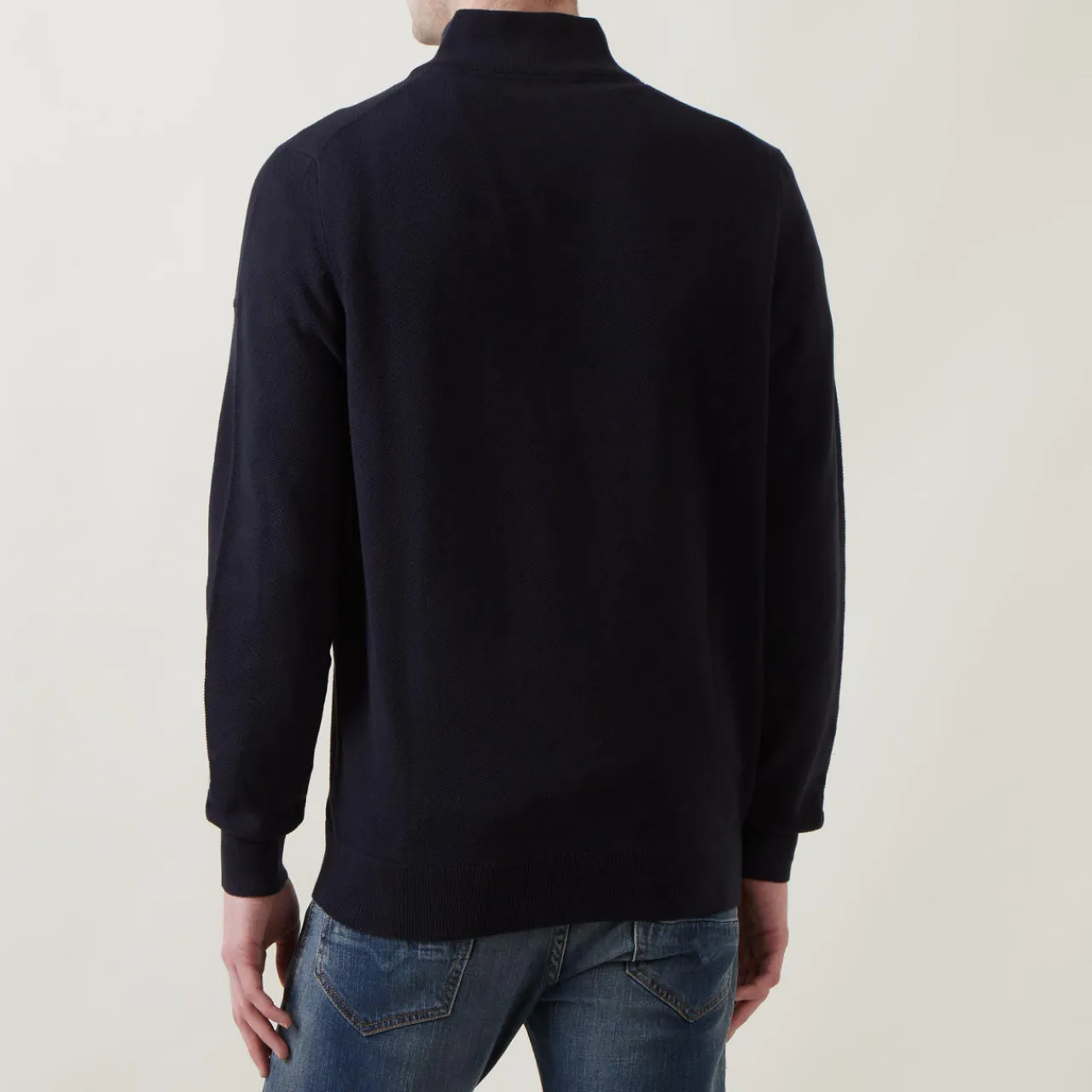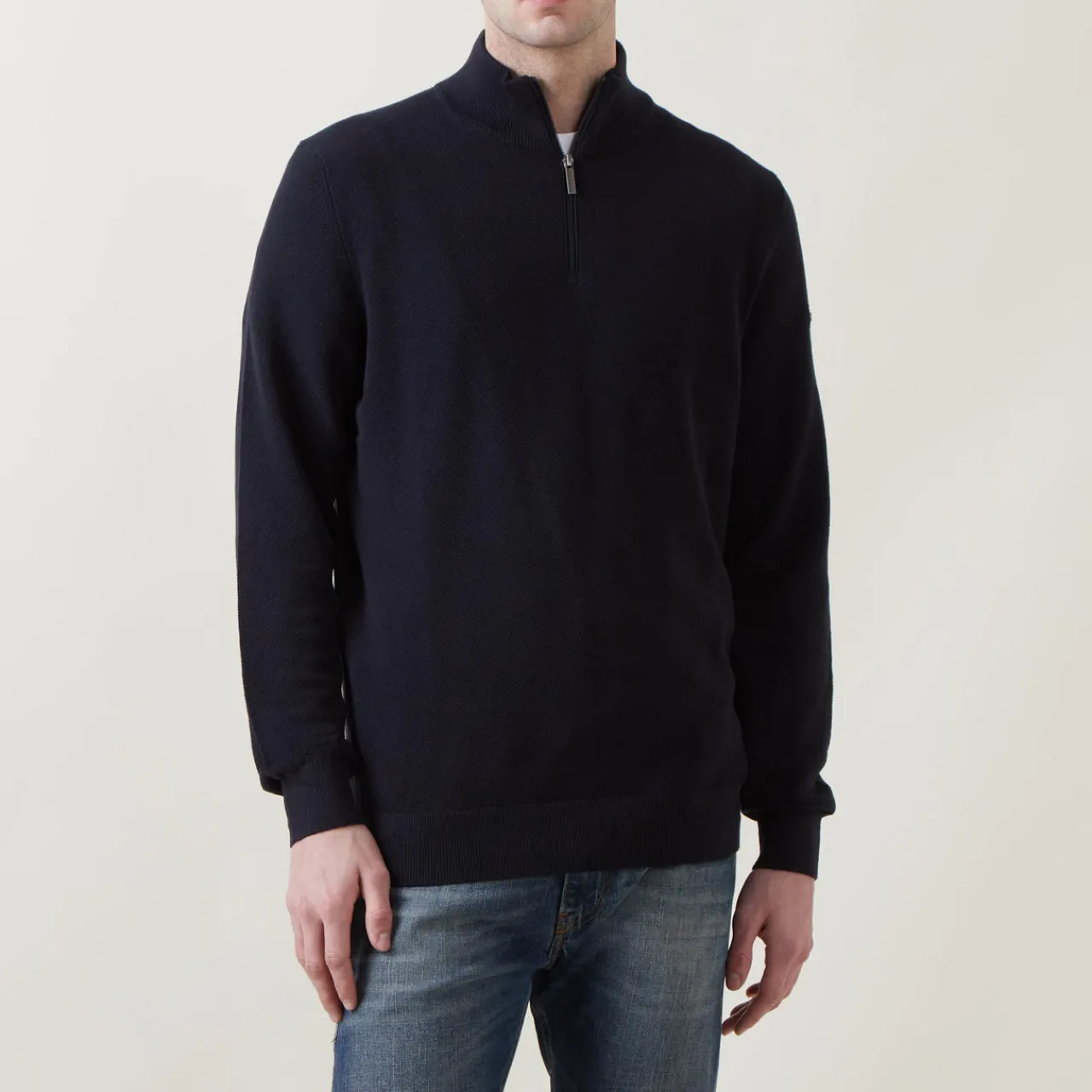 - Half-zip fastening, long sleeves, funnel neck, ribbed trims