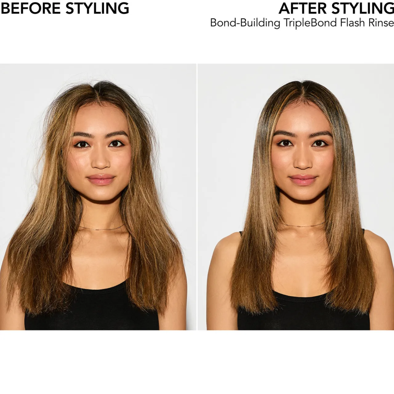 Description:Bond-Building TripleBond Flash Rinse is an instant hair treatment that builds the 3 essential bond types to help fortify and add shine. Provides lightweight hydration and leaves hair shiny, detangled, and smooth.