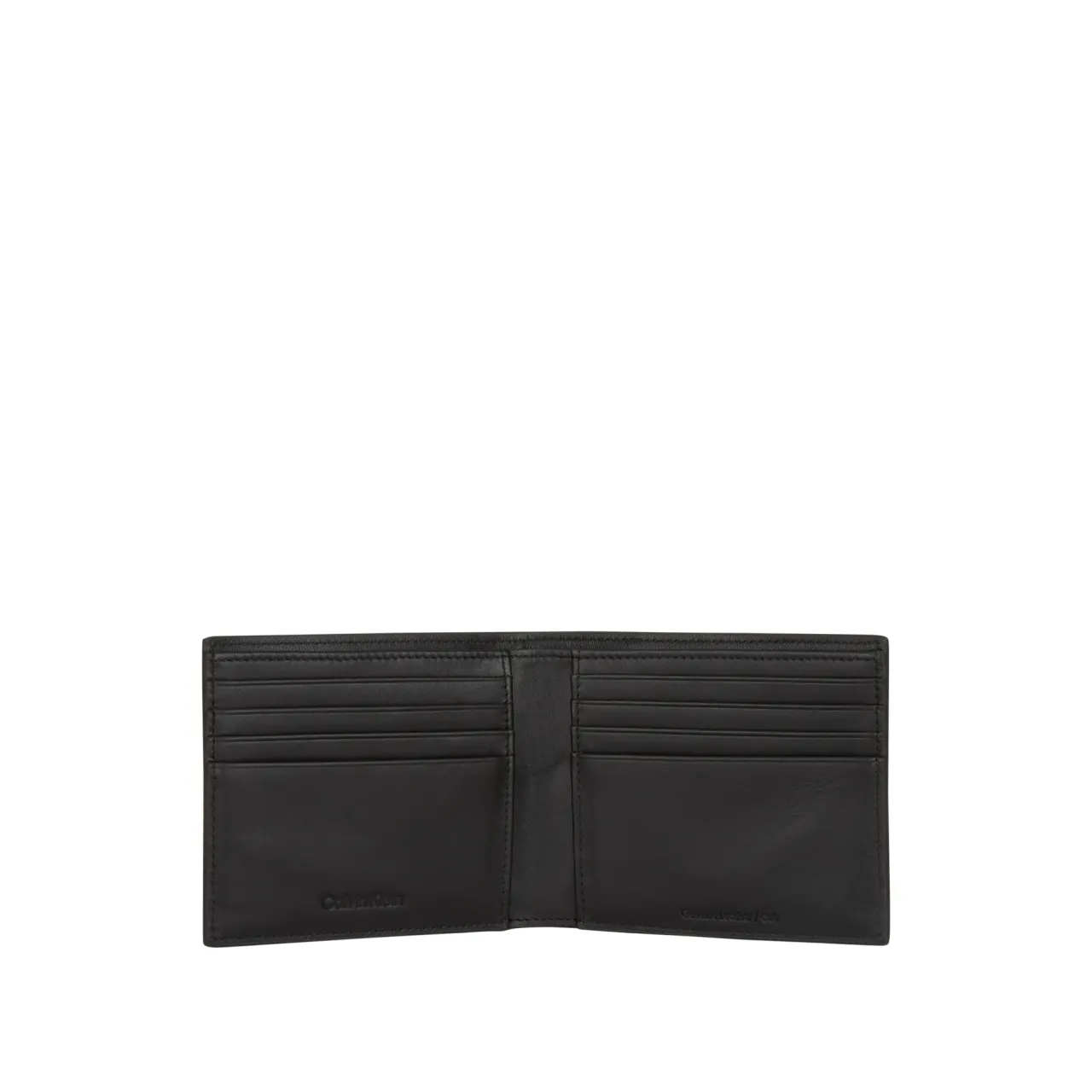 - Billfold design, eight card slots, two slip pockets, one bill compartment, embossed inner logo detailing, tonal monogram logo on the front, tonal stitching, smooth leather finish