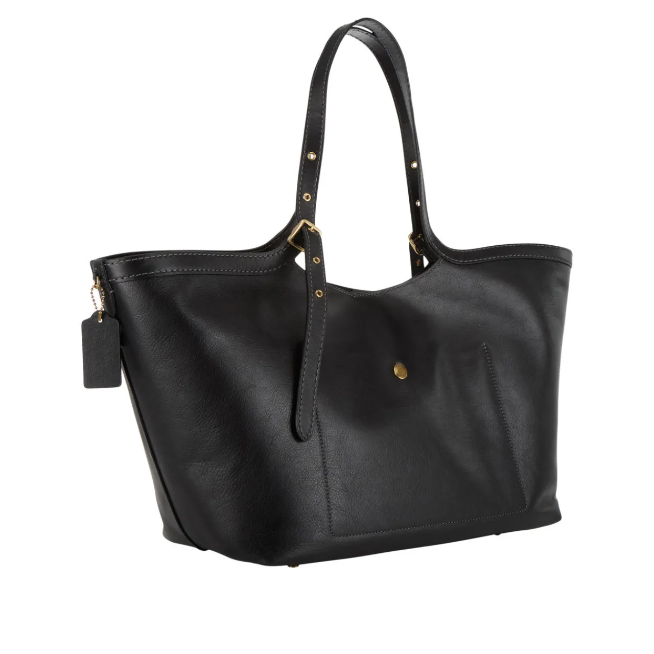 - Adjustable top handles, magnetic dot fastening, four protective foot studs, fits laptops up to 16in, natural grained leather finish, gold-tone hardware, logo detail