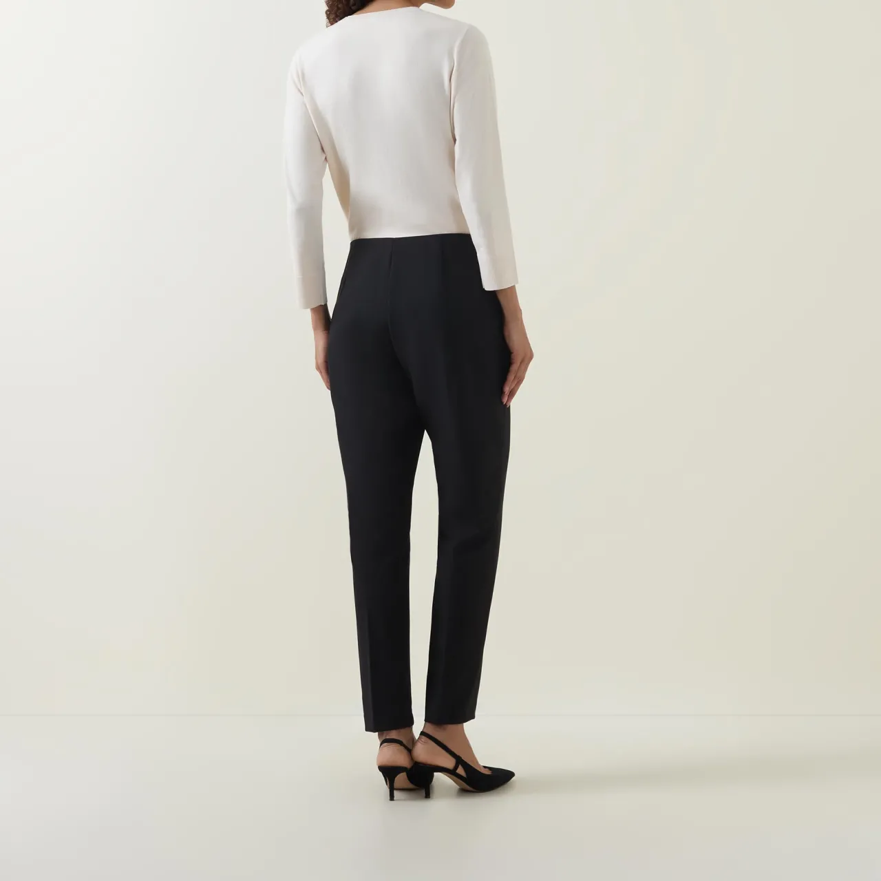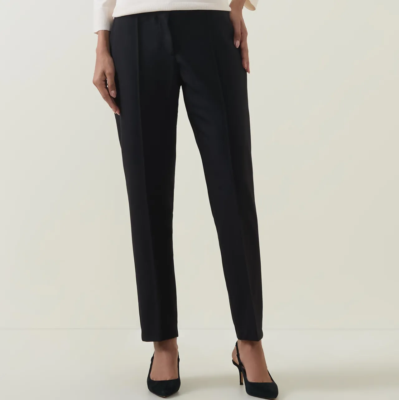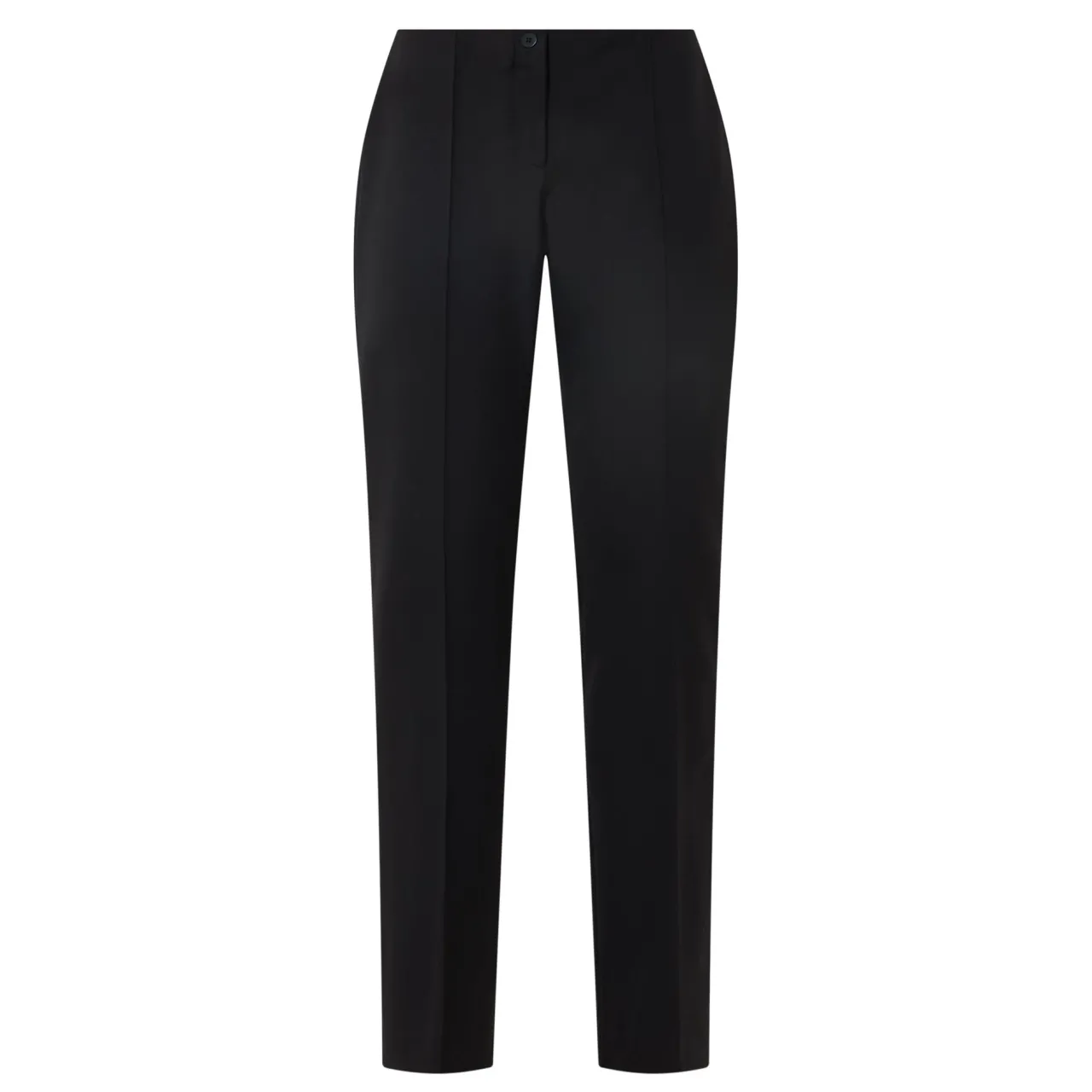 - Zip-fly and button closure, mid-rise, inverted pleated seams, straight-cut leg, smooth fabric