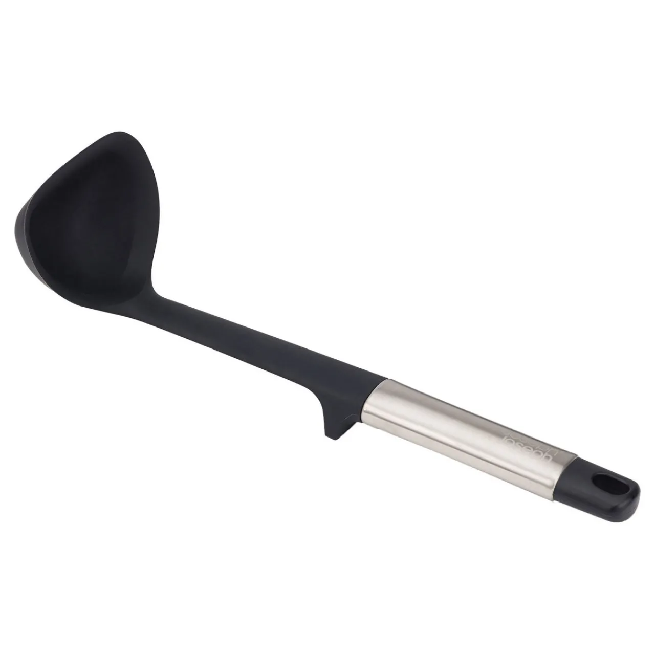 - Elevate technology designed to improve hygiene and reduce mess, Weighted handle and integrated tool rest prevents the tool head from touching the work surface when placed down, Deep tool head with a flat front edge ideal for scooping from pots and pans, Silicone heat-resistant up to 210ºC/410ºF, Suitable for use with non-stick cookware