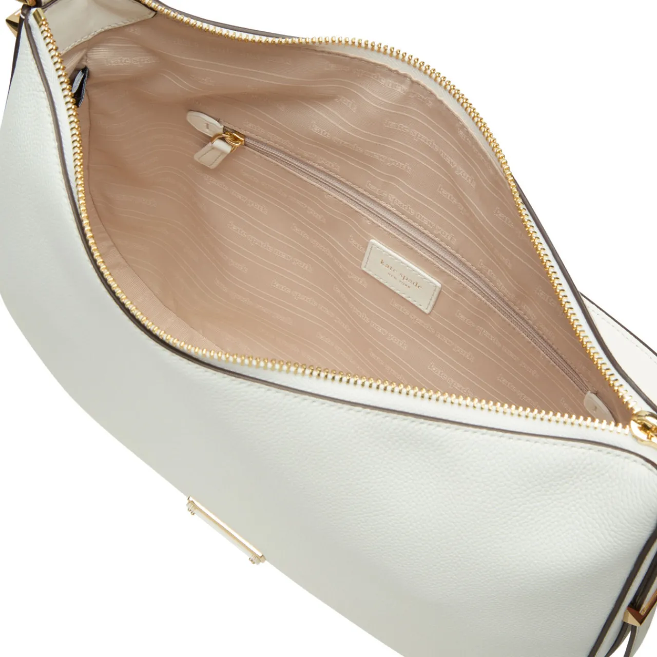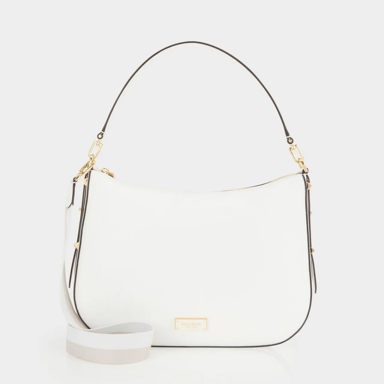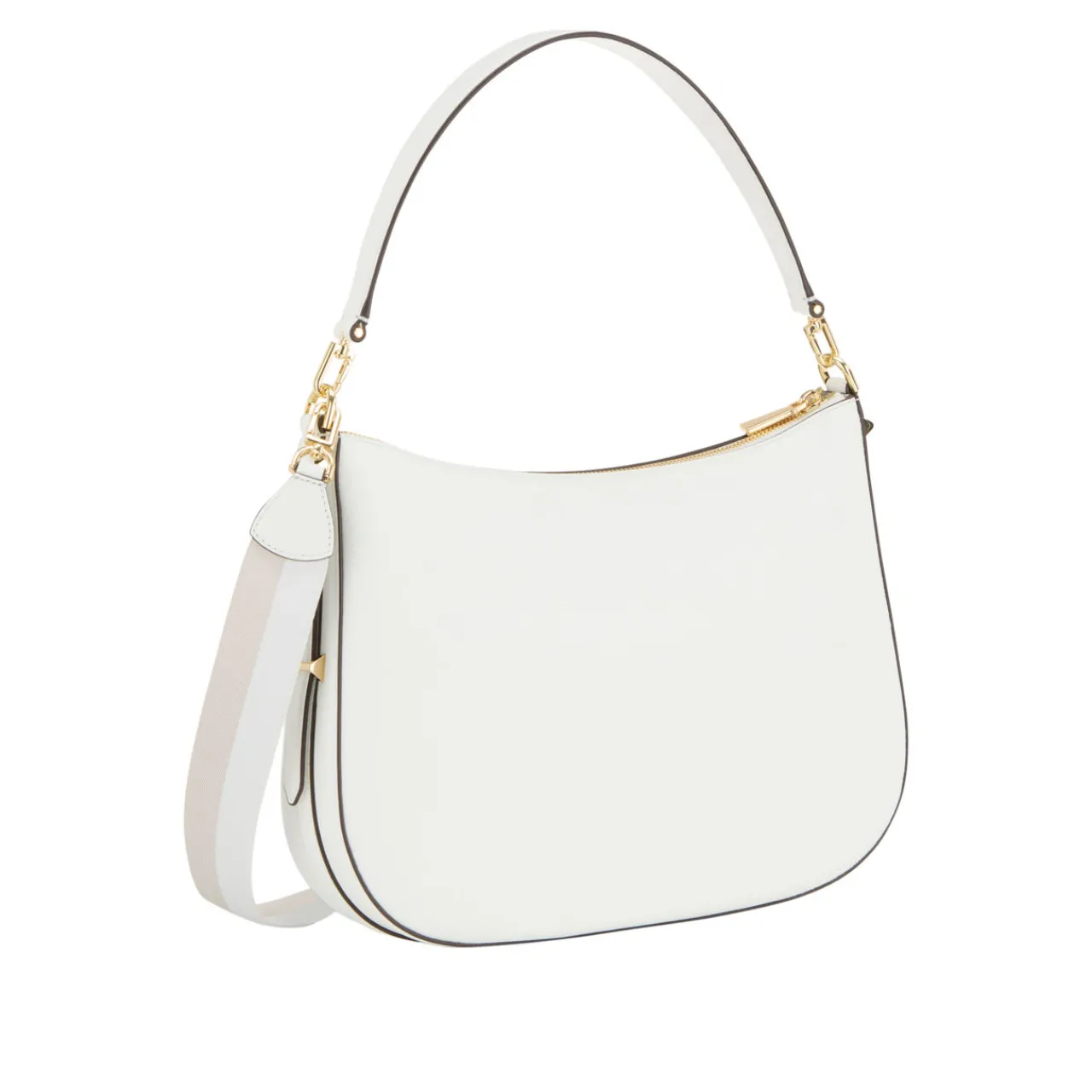 - Top zip fastening, adjustable and detachable strap, hobo shape, gold-tone hardware, logo plaque detail, pebbled finish
