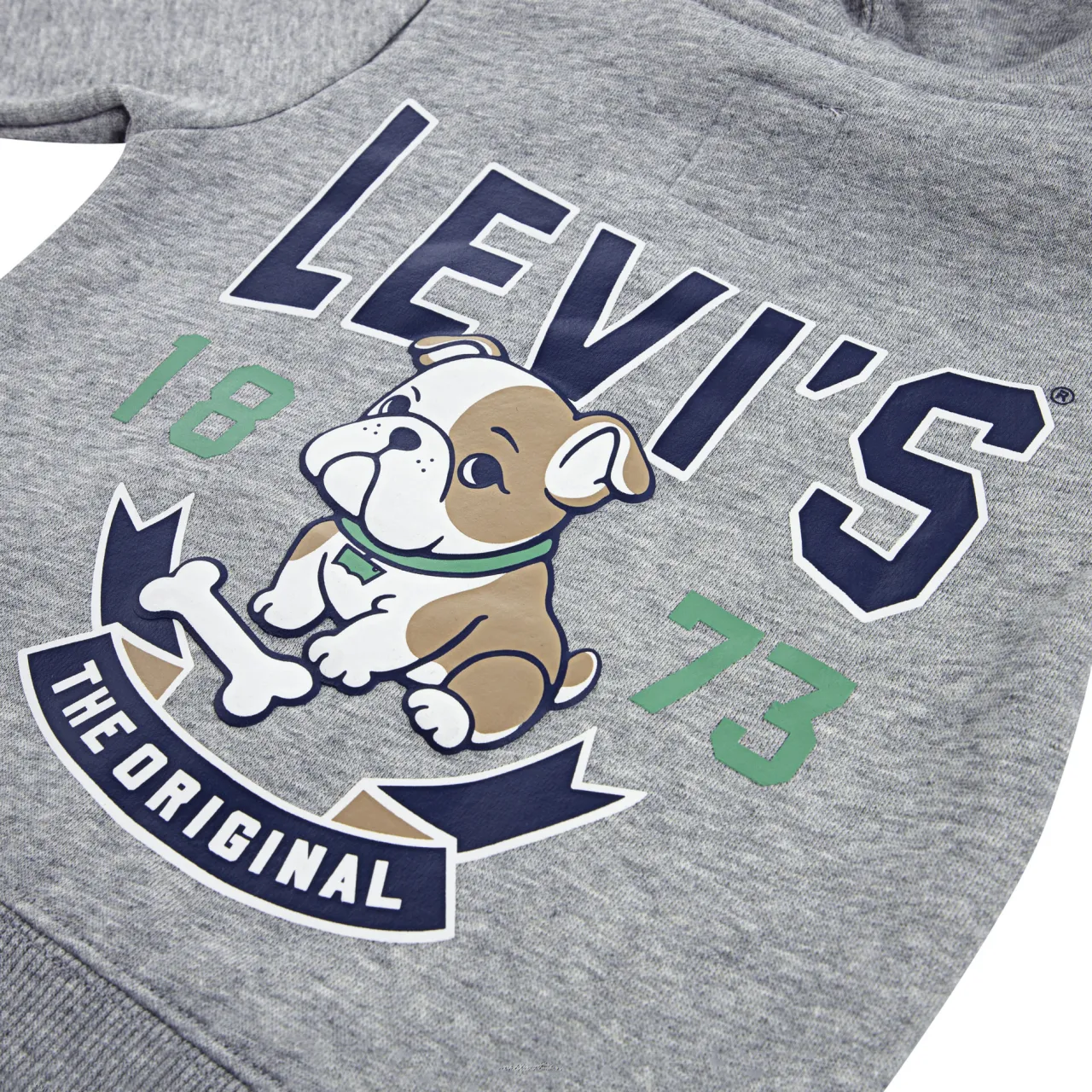 - Bodysuit: Short sleeves, logo detail, overlap shoulders, round neckline, graphic logo, snap tape closures, jersey fabric. Hoodie: Full-zip fastening, two pockets, dog logo printed details, fleece fabric. Jeans: Stretch-fused denim, semi-elasticated waistband, hook and eye closure, straight-leg silhouette, signature back pocket
