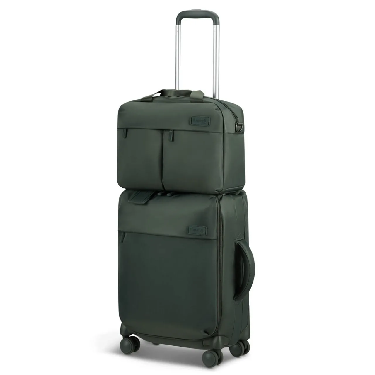 - Features: Exterior: Two top carry handles, two front zipped pockets, one back smart sleeve allowing the bag to fit over the top of a suitcase, two-way top zip fastening, silicone zip pullers, brand logo patch, shoulder strap, water repellent fabric. Interior: Main compartment, one zipped pocket, one mesh pocket, two patch pockets
