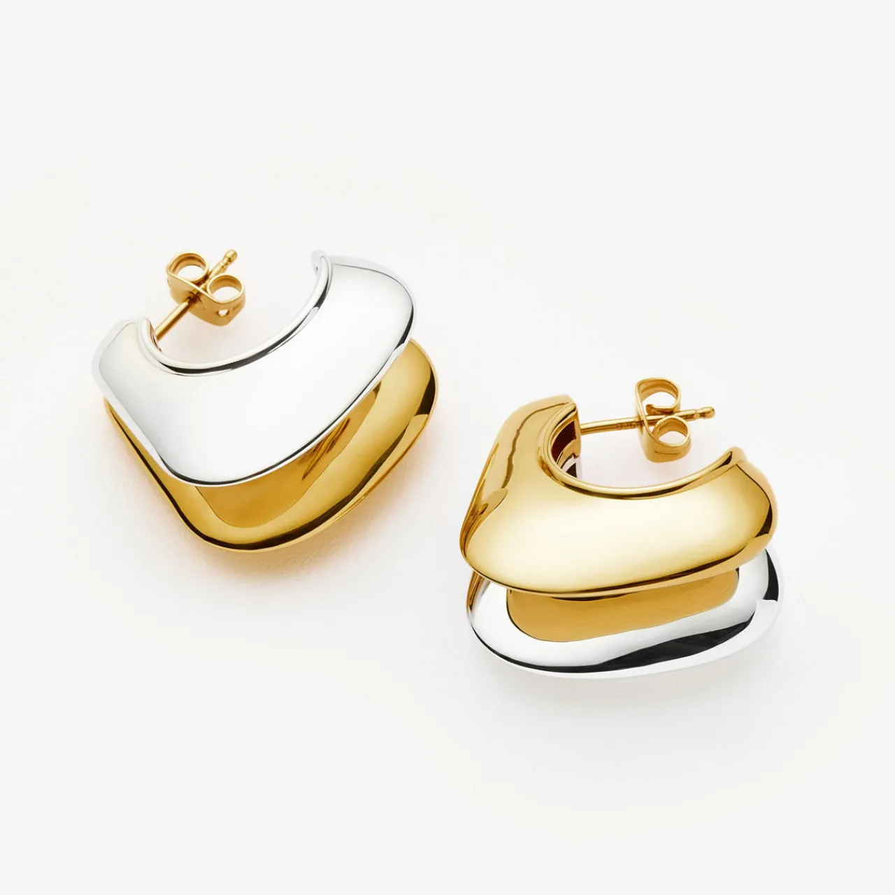 - Medium size, hoop style, double-ridge detailing, post and push back fastening, gold and rhodium plating, dual-toned