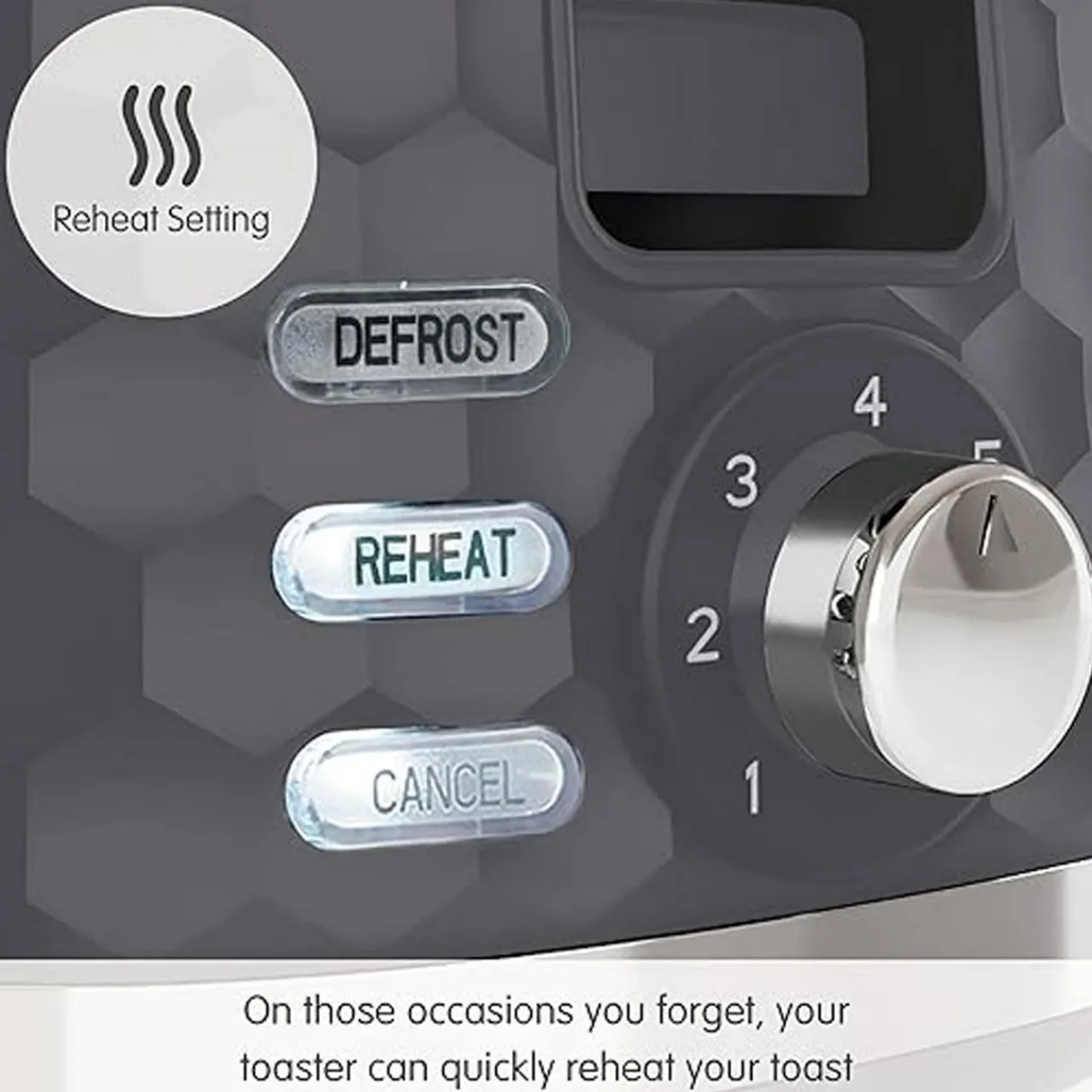 On those occasions where we forget, your toaster will quickly re-heat your toast for you