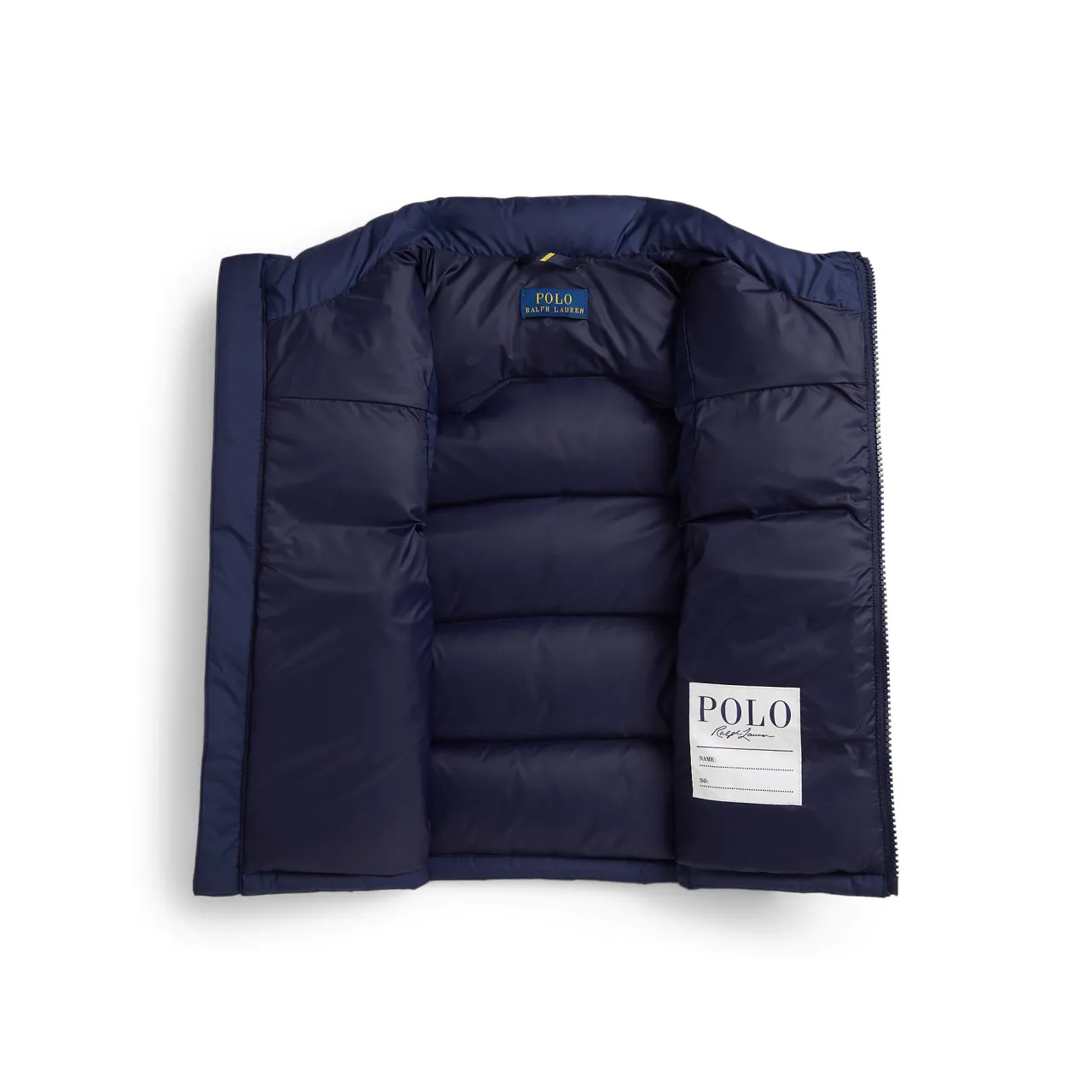 - Signature embroidered Pony logo detail, mockneck, full-zip front with flap, two front zipped pockets, elasticated side hem, signature internal name tag label, fully lined, fully filled, water-repellent shell, 650-fill-power down fill, sleeveless