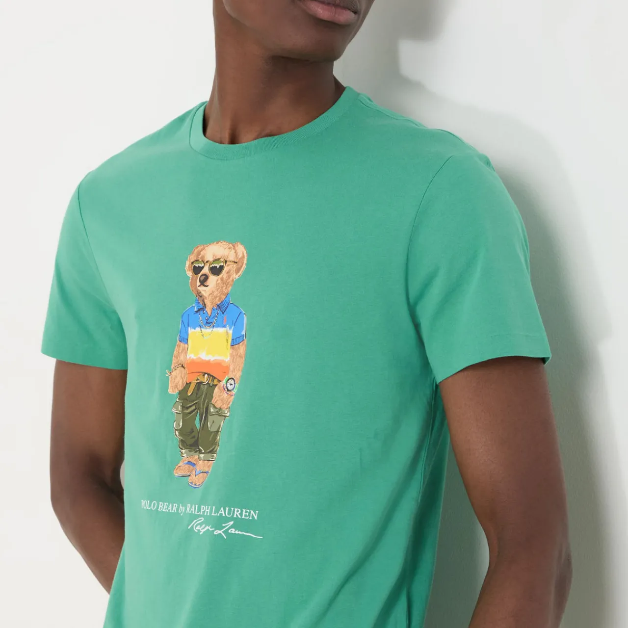 - Surf bear graphic, round neck, short sleeves, straight hemline, logo detail
