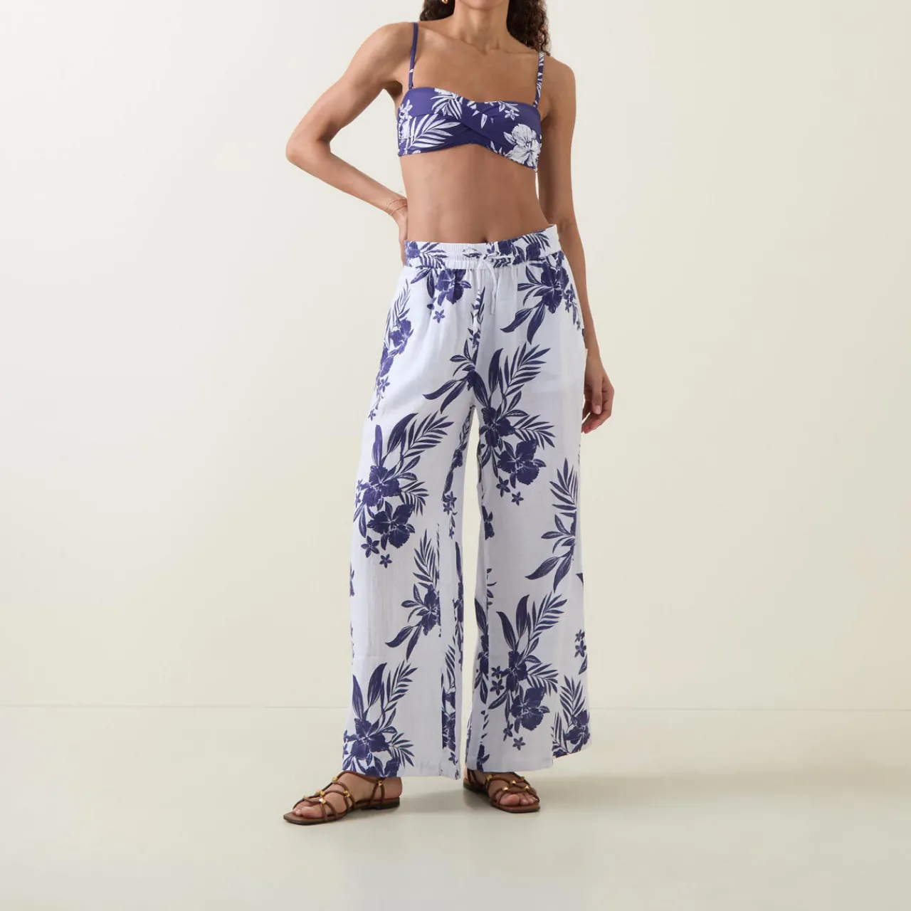 - Adjustable straps, bandeau style, twisted front, contrasting floral pattern, back clasp