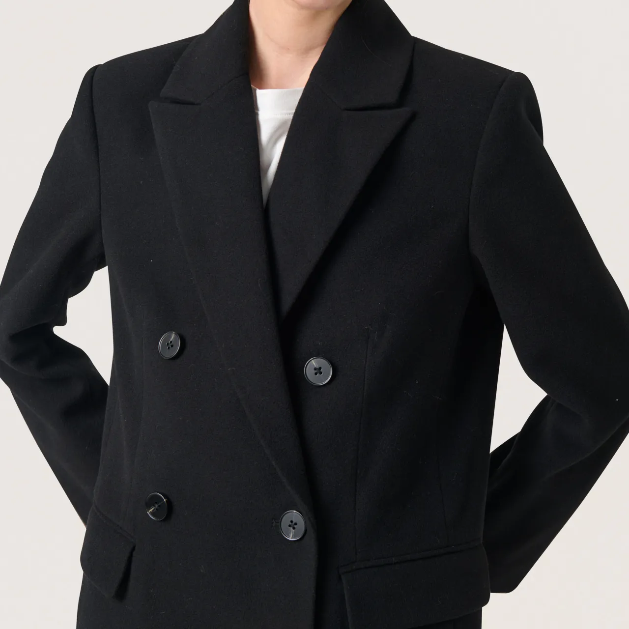 - Tailored style, woven, long sleeves, collared neckline