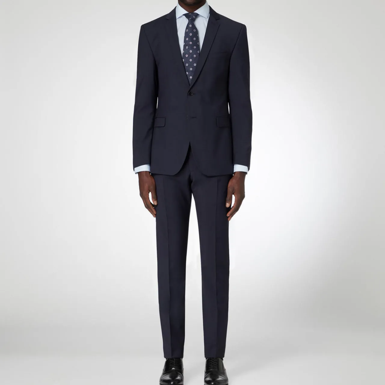 - Single-breasted, padded shoulders, notched lapels, welt pockets, fully lined.