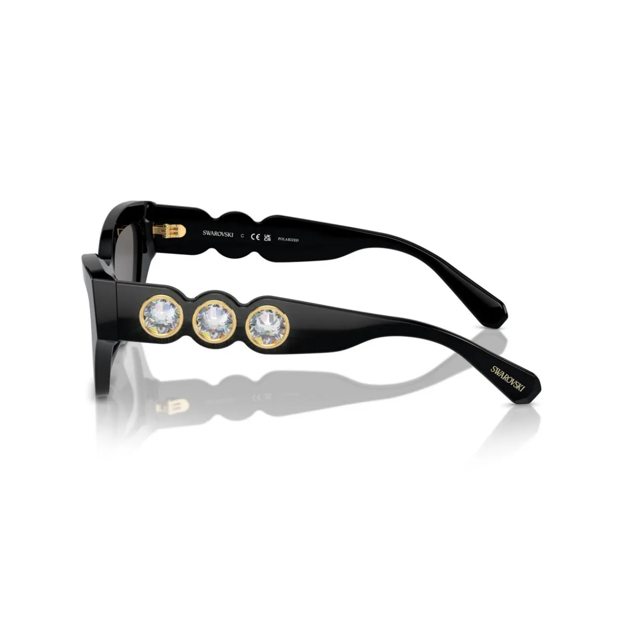 Swarovski presents a collection of sunglasses adorned with the label’s signature crystals in a range of cuts and hues. The glittering stones elevate a range of classic styles, including aviator, rectangular, cat-eye, square and more for the ultimate glamorous finish.