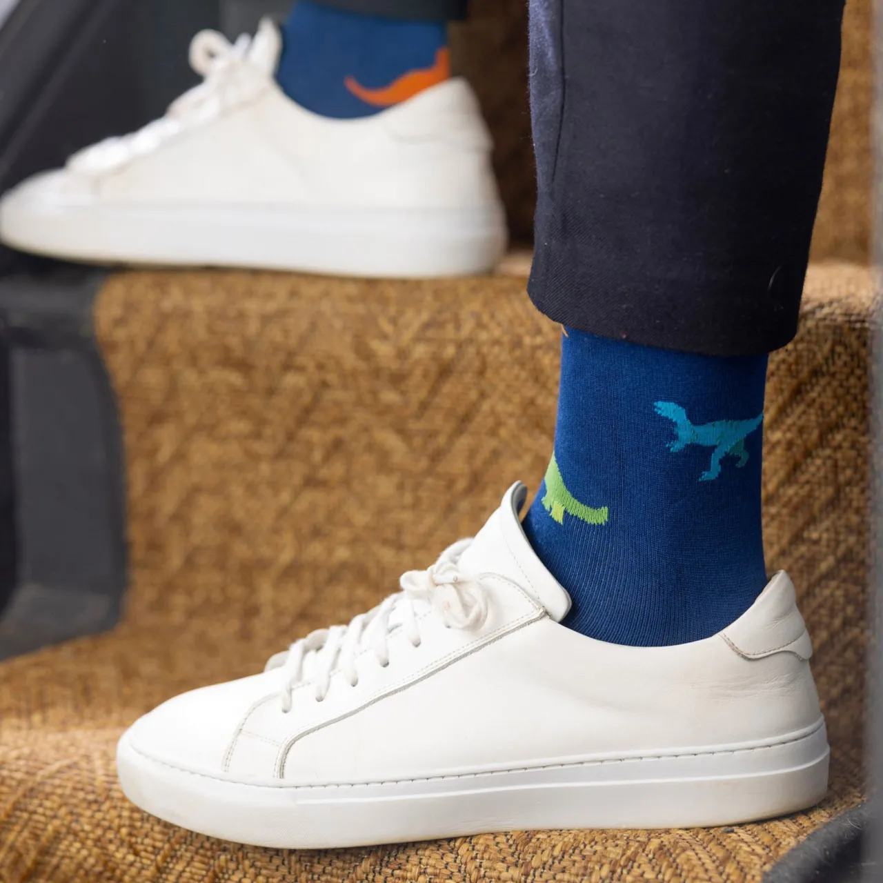 - Dinosaur print, logo details, knitted, unique bamboo blend, reinforced heel and toe, hand-linked seams for added comfort, soft, durable