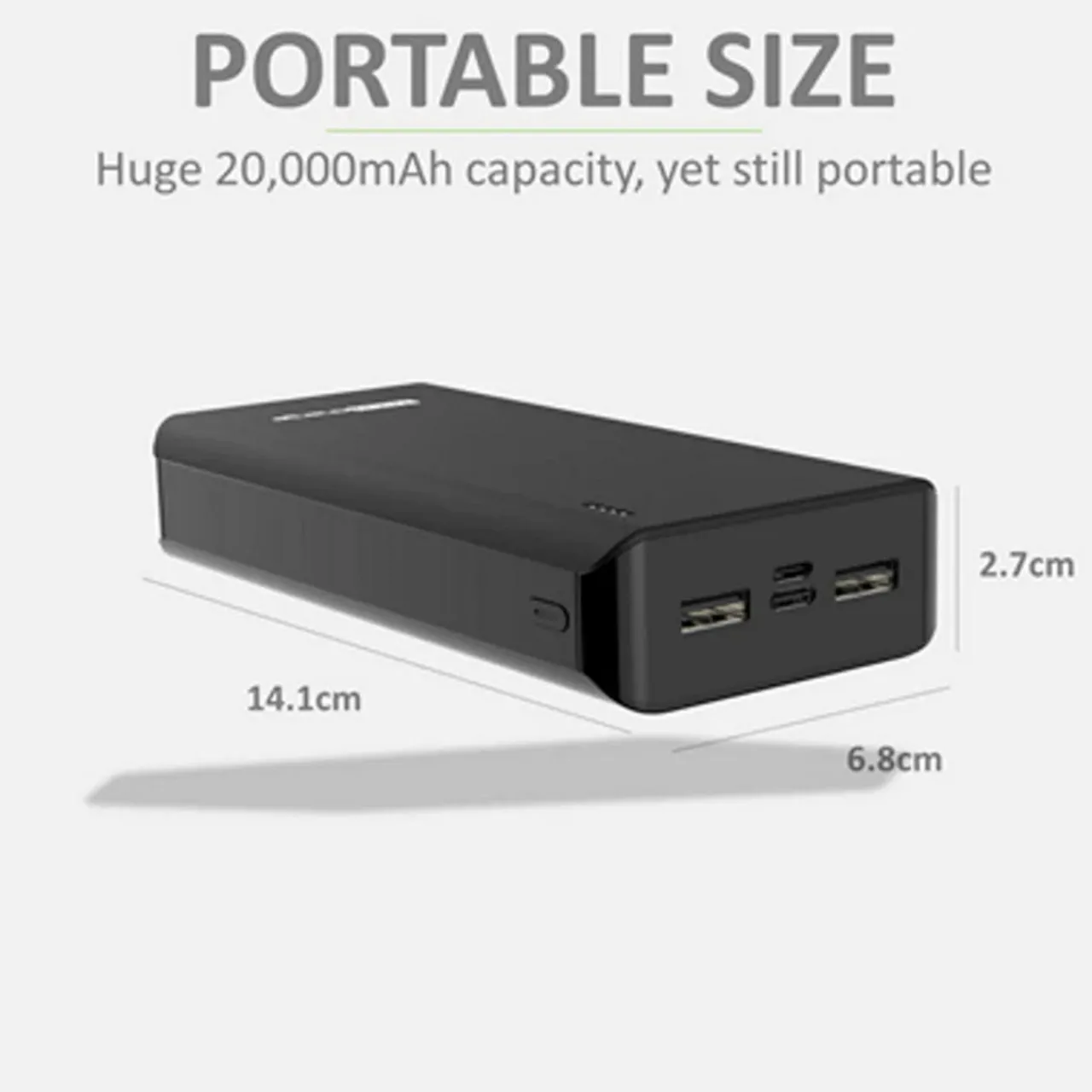 - Huge power yet still portable: At 404g the Triple Port 20,000 is small enough to carry around in handbags, rucksacks etc and give you the power you need for your devices whilst on the move.