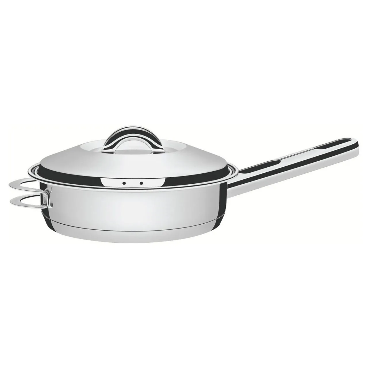 - Triple layer base, which comprises a sandwich of stainless steel-aluminium-stainless steel, features handles and a lid
