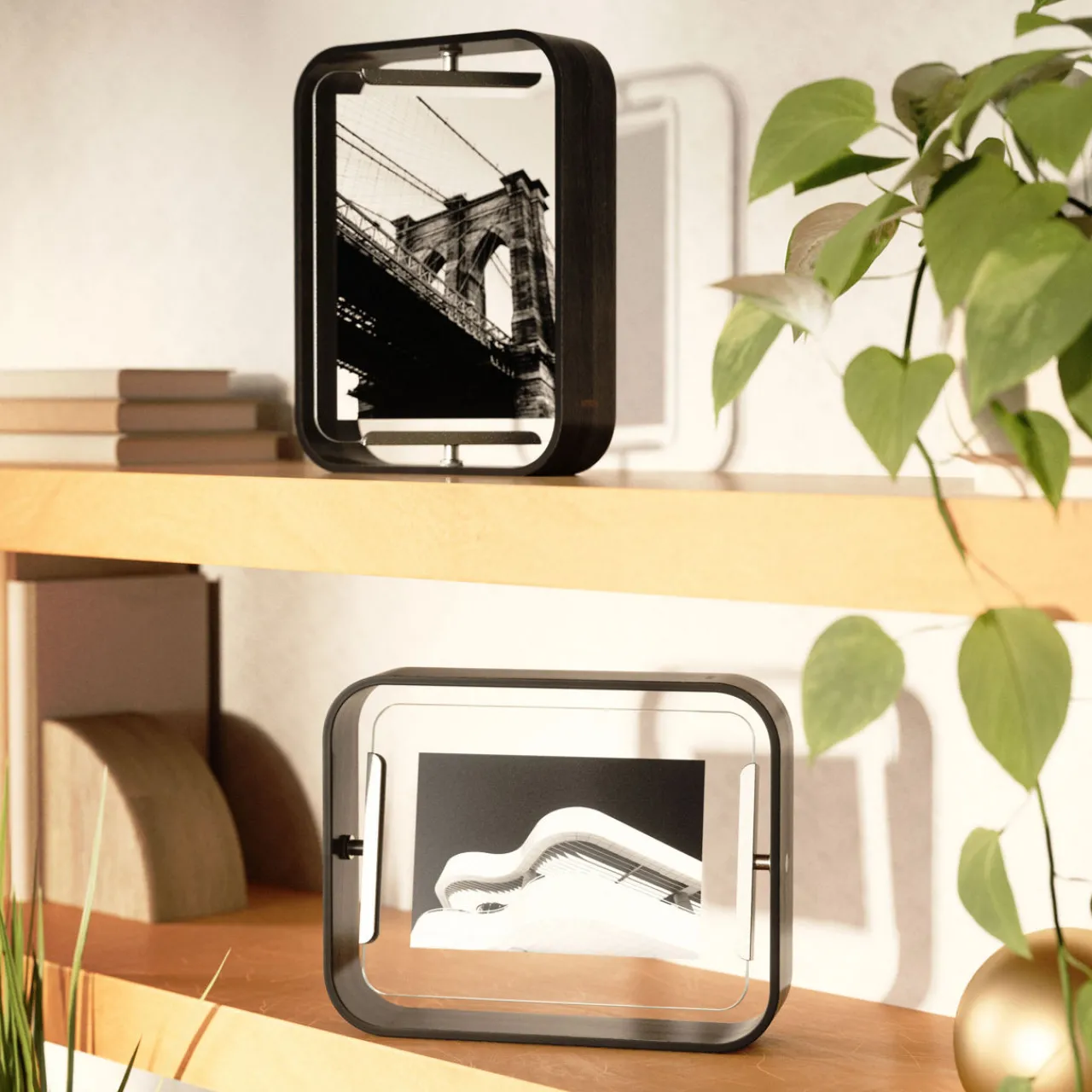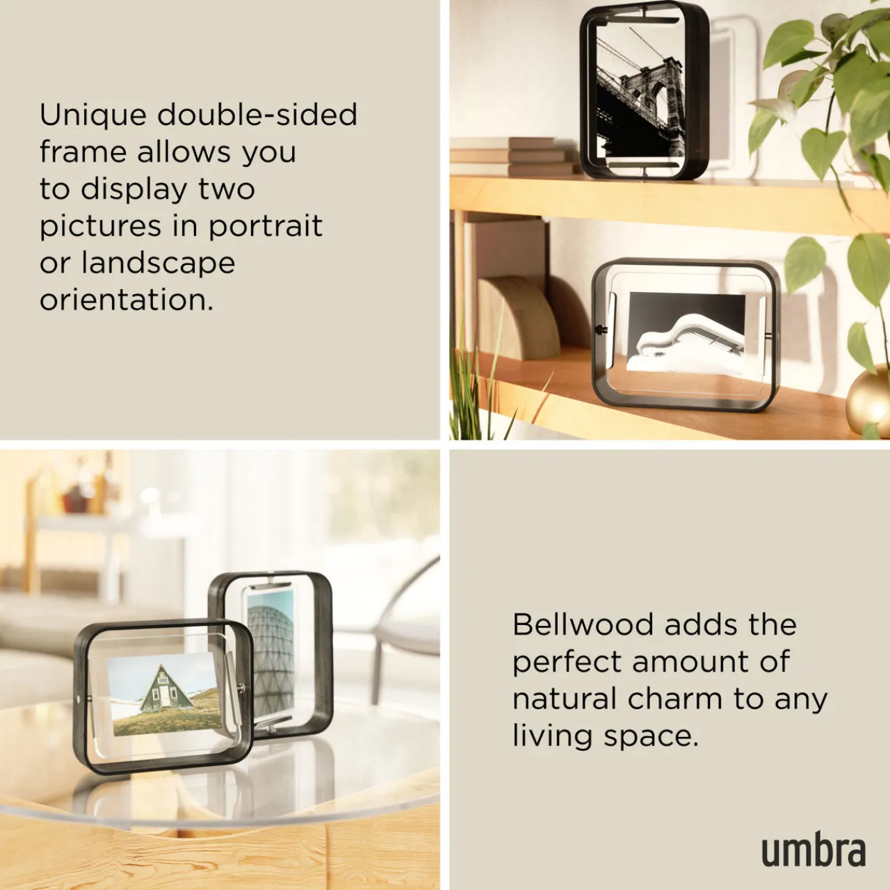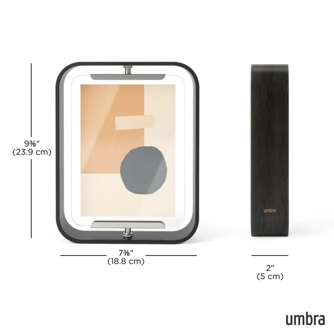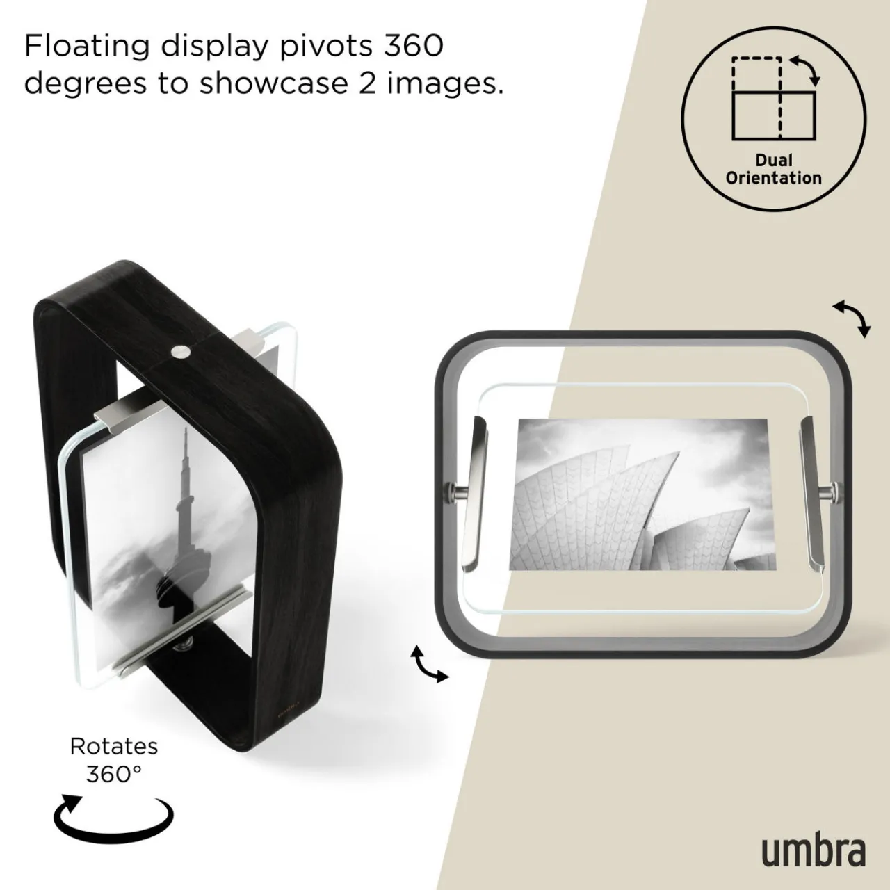 - Landscape or portrait photos, pivots 360-degrees, eco-conscious sustainable design, versatile double-sided frame