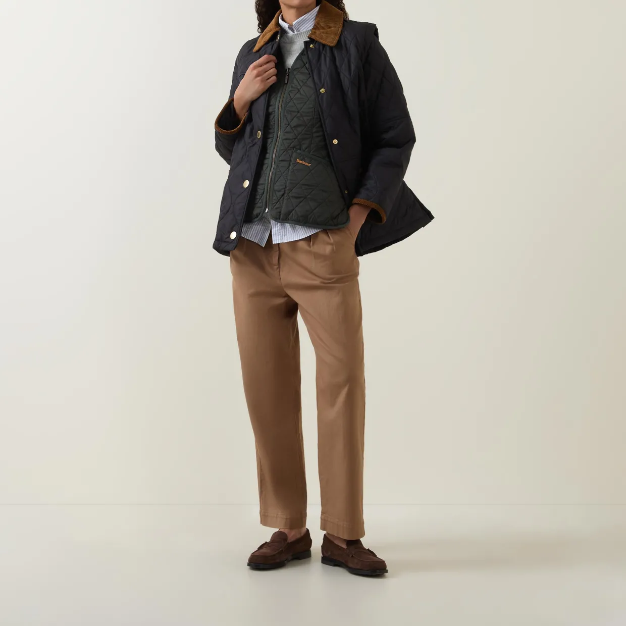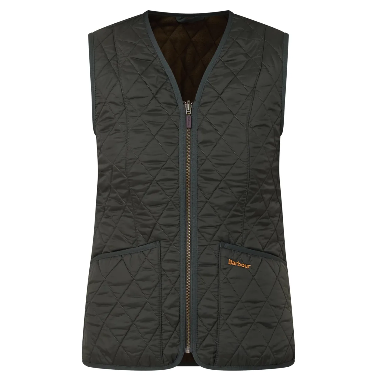 - V-neckline, sleeveless design, front zip fastening, two front slip pockets, straight hem, bound trims, embroidered logo detailing, quilted finish, fleece-lined