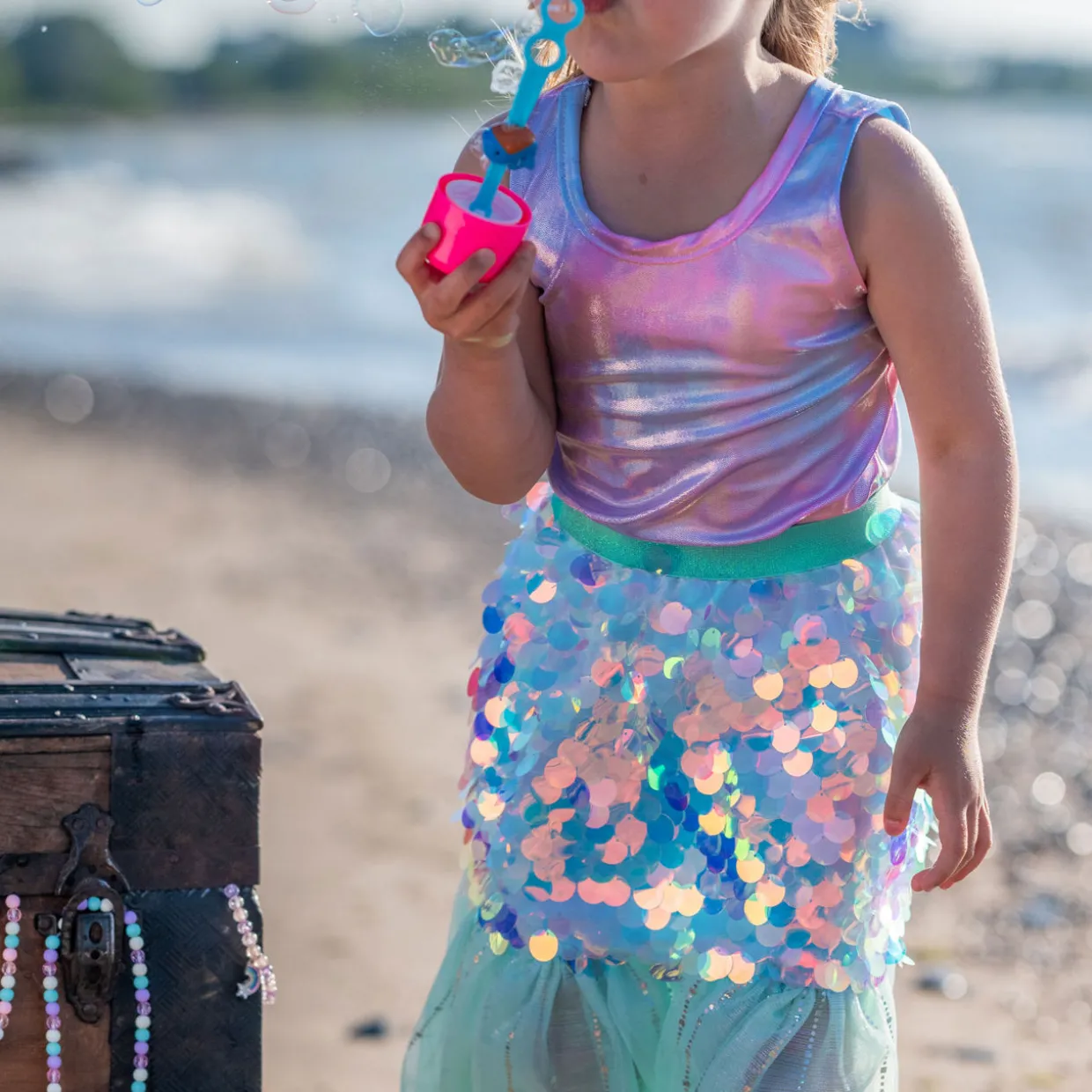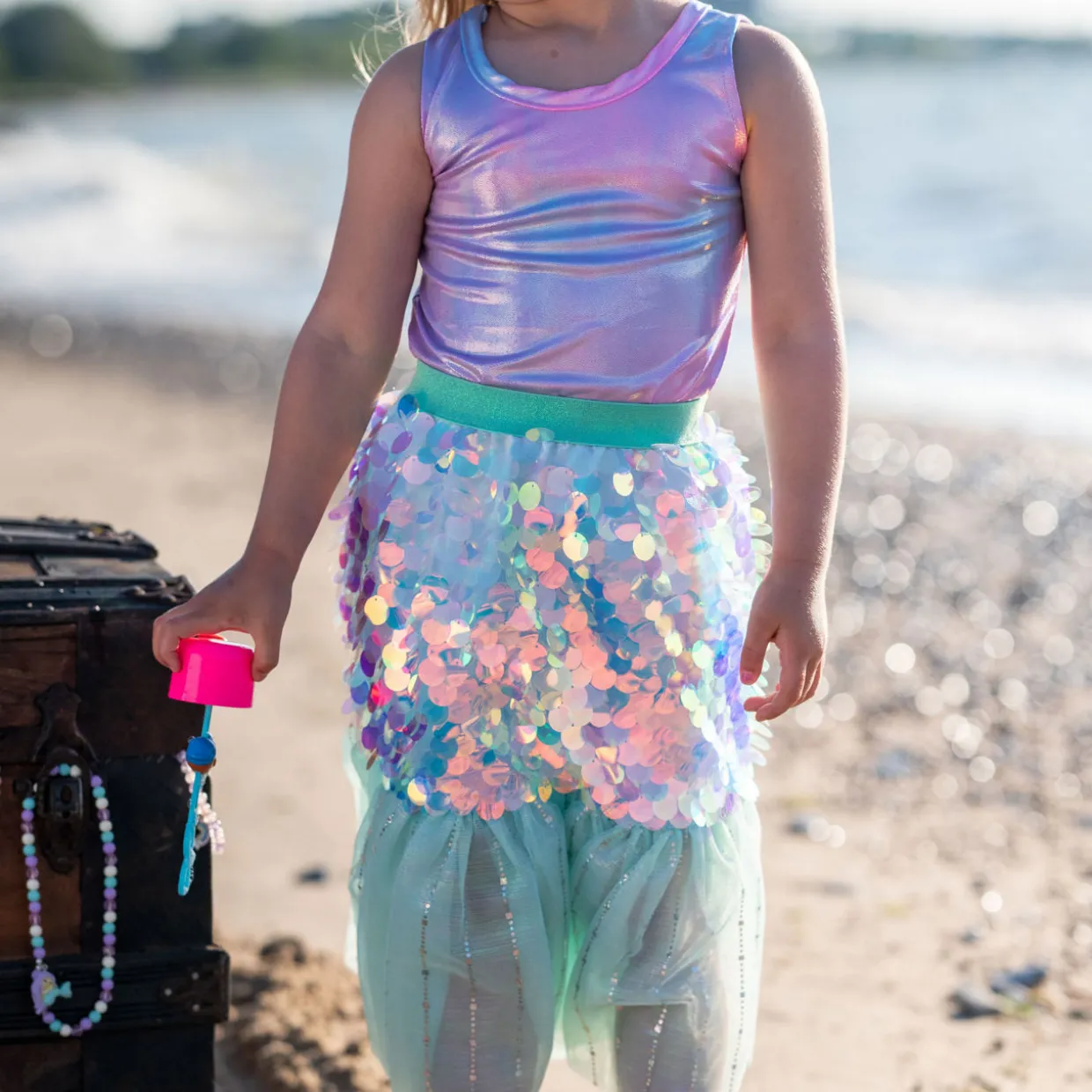 - Skirt: Tulle fabric, shimmering large sequin details, comfortable waistband. Hairclip: Shell detail, flowing ribbons