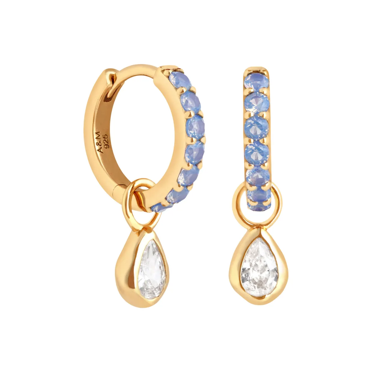 - Huggie hoop style, pavé crystals, bezel set crystal charm, cubic zirconia, pearl, latch fastening